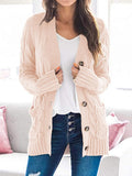 Cable Knit Button Front Cardigan, Casual Solid Long Sleeve Cardigan