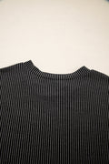 Sale Black Stripe Half Sleeve Scoop Neck Loose Top