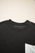 Carbon Grey Corded Knit Color Block Pocketed Crew Neck T Shirt