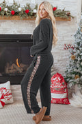 Carbon Grey Twisted Rib Texture Leopard Patchwork Detail 2pcs Pant Set