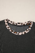 - Twisted rib adds texture and cozy flair to this 2 piece pants set.Bold leopard patchwork brings trendy edge.Soft stretchy fabric ensures all-day comfort and easy movement.Ribbed matching set ideal for running errands or lounging in style.