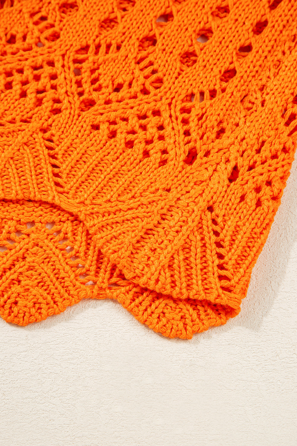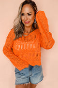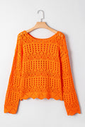 Carrot Solid Color Open Crochet Scallop Edge Sweater