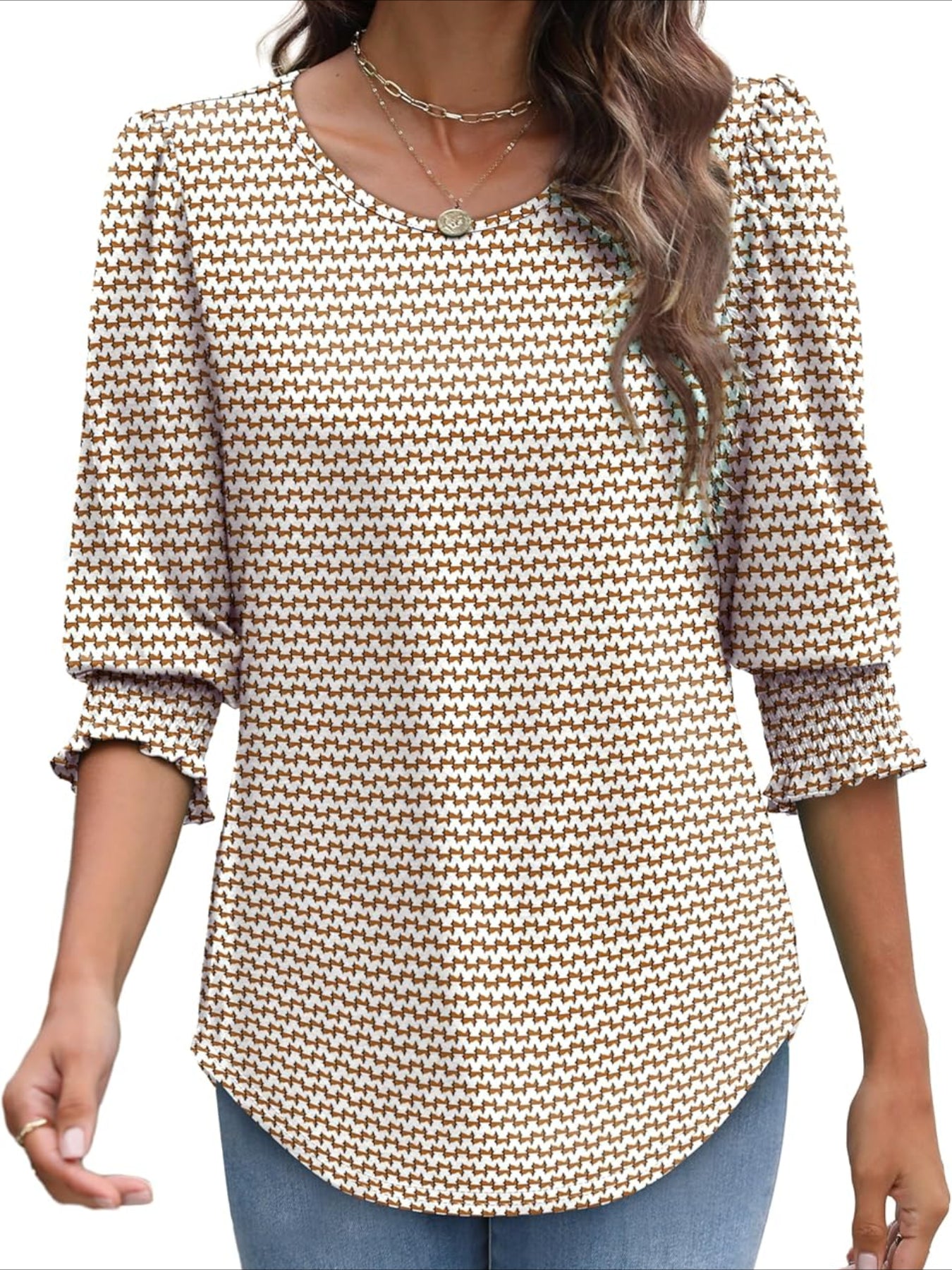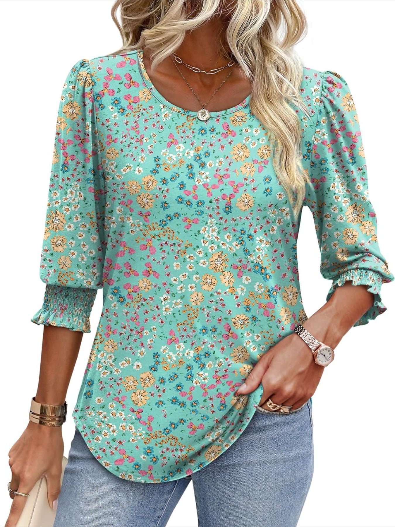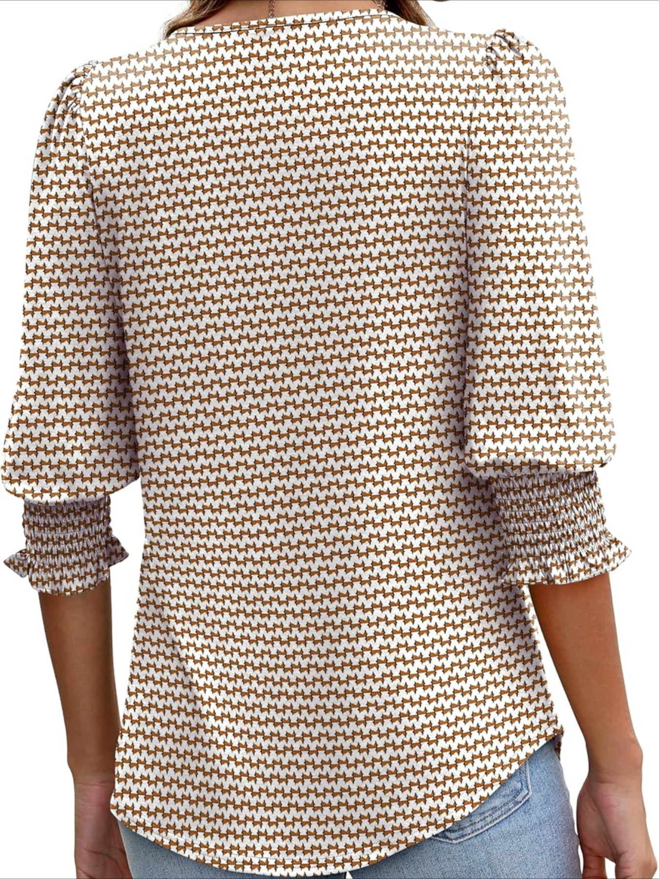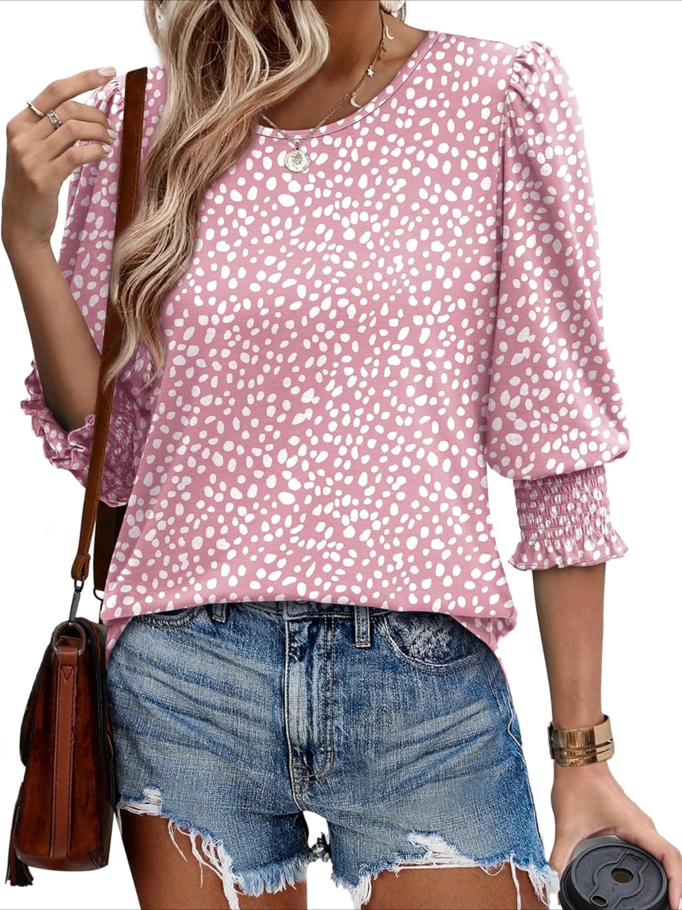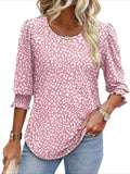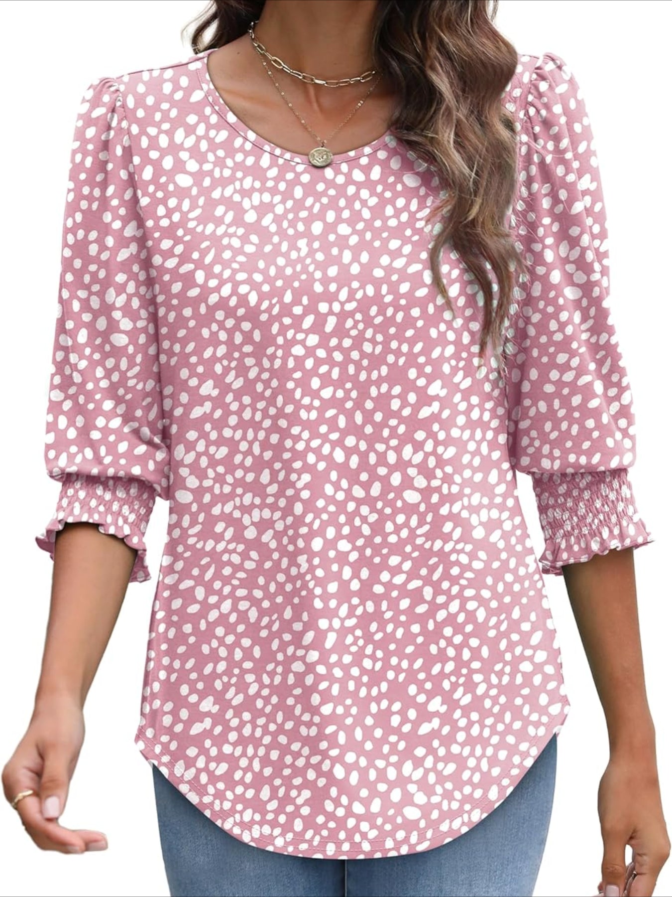 Casual 3/4 Length Sleeve Blouses with Smocked Cuffs
