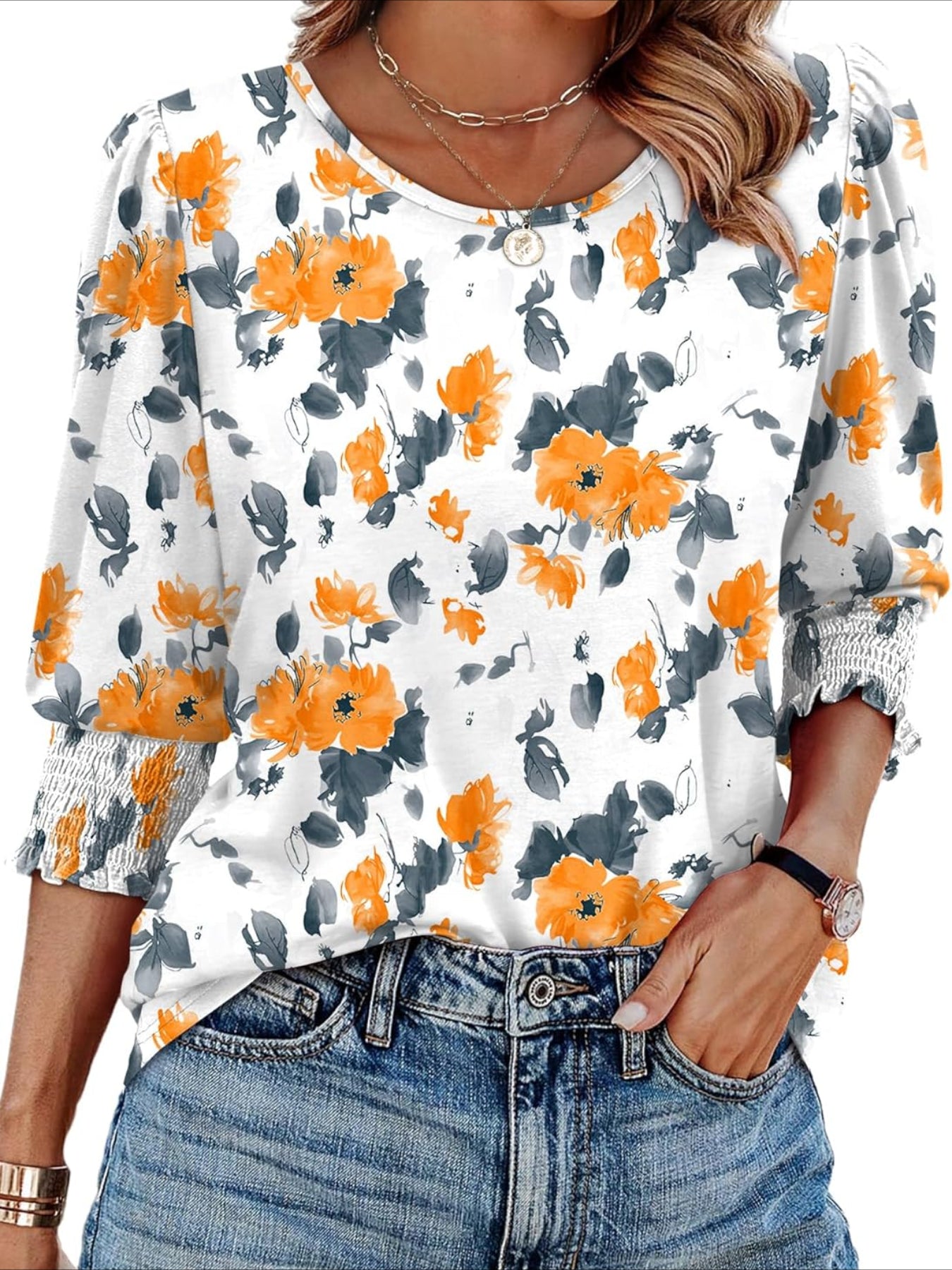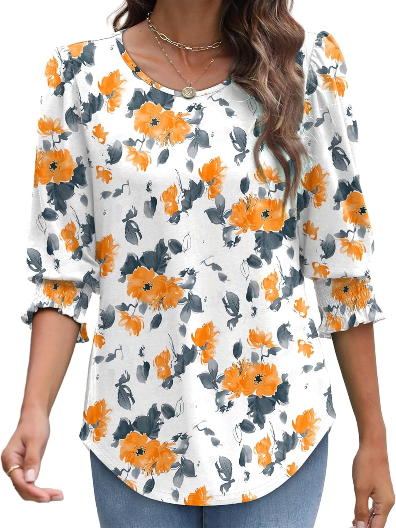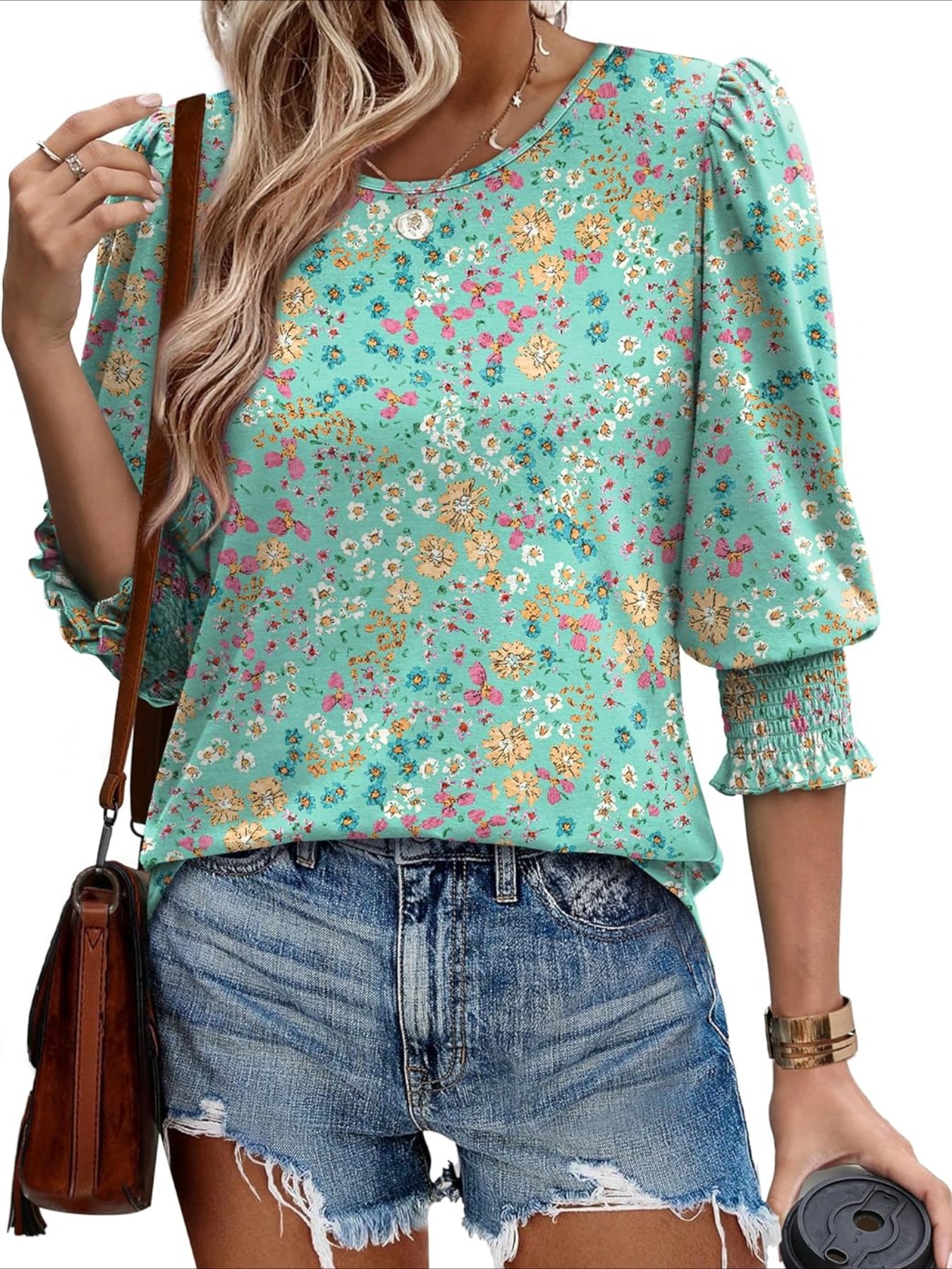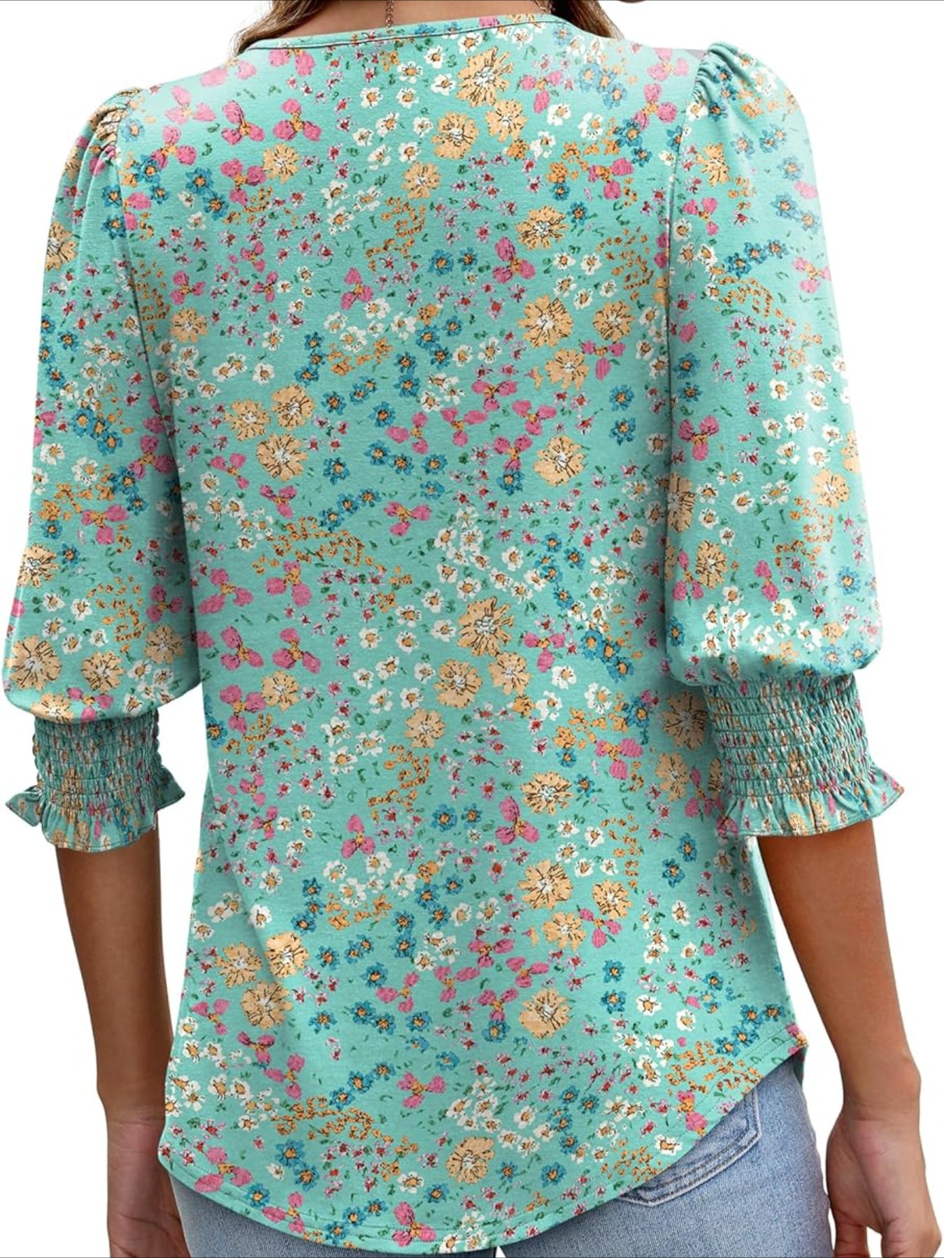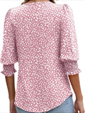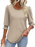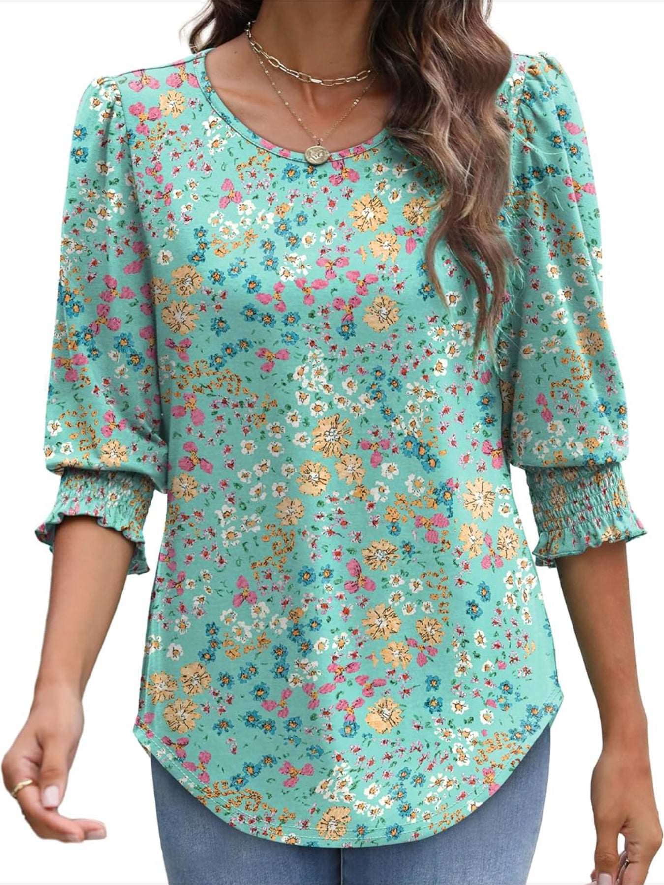 Casual 3/4 Length Sleeve Blouses with Smocked Cuffs