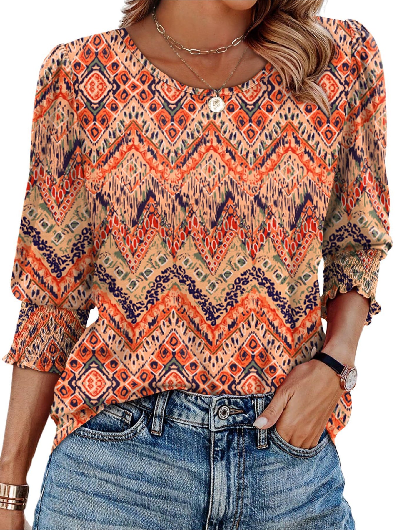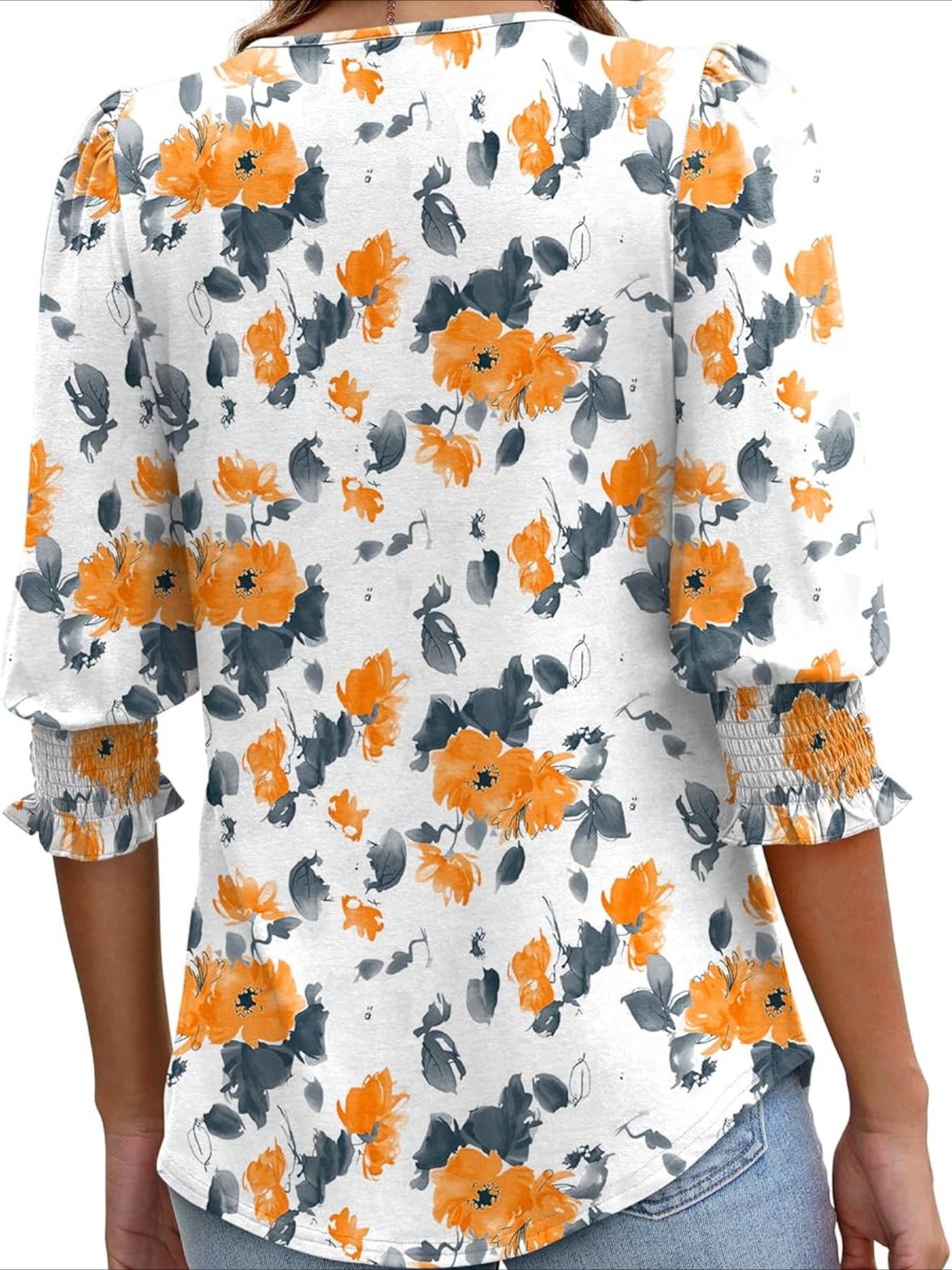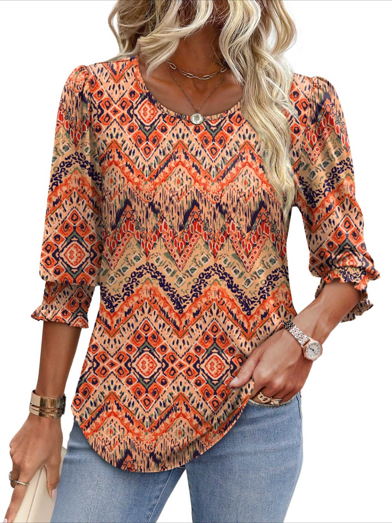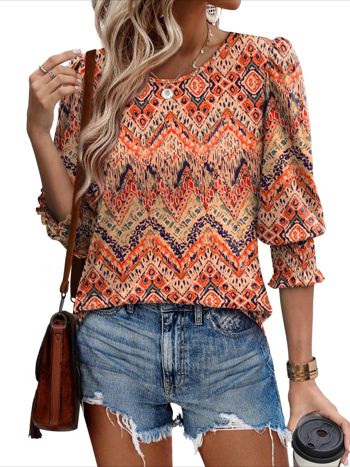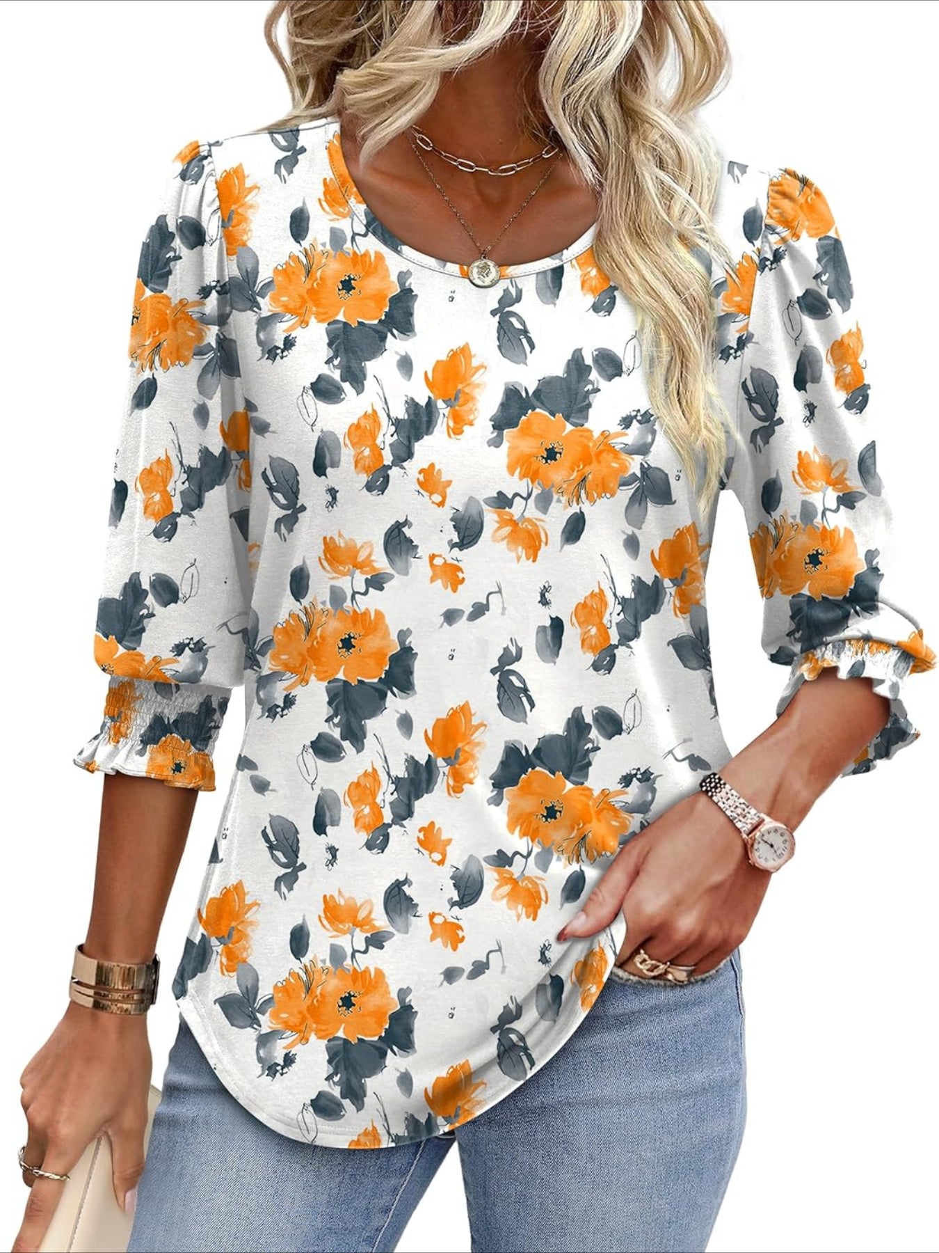Casual 3/4 Length Sleeve Blouses with Smocked Cuffs