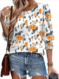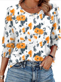 Crew Neck Floral Long Sleeve Comfy Casual Sweater Tee
