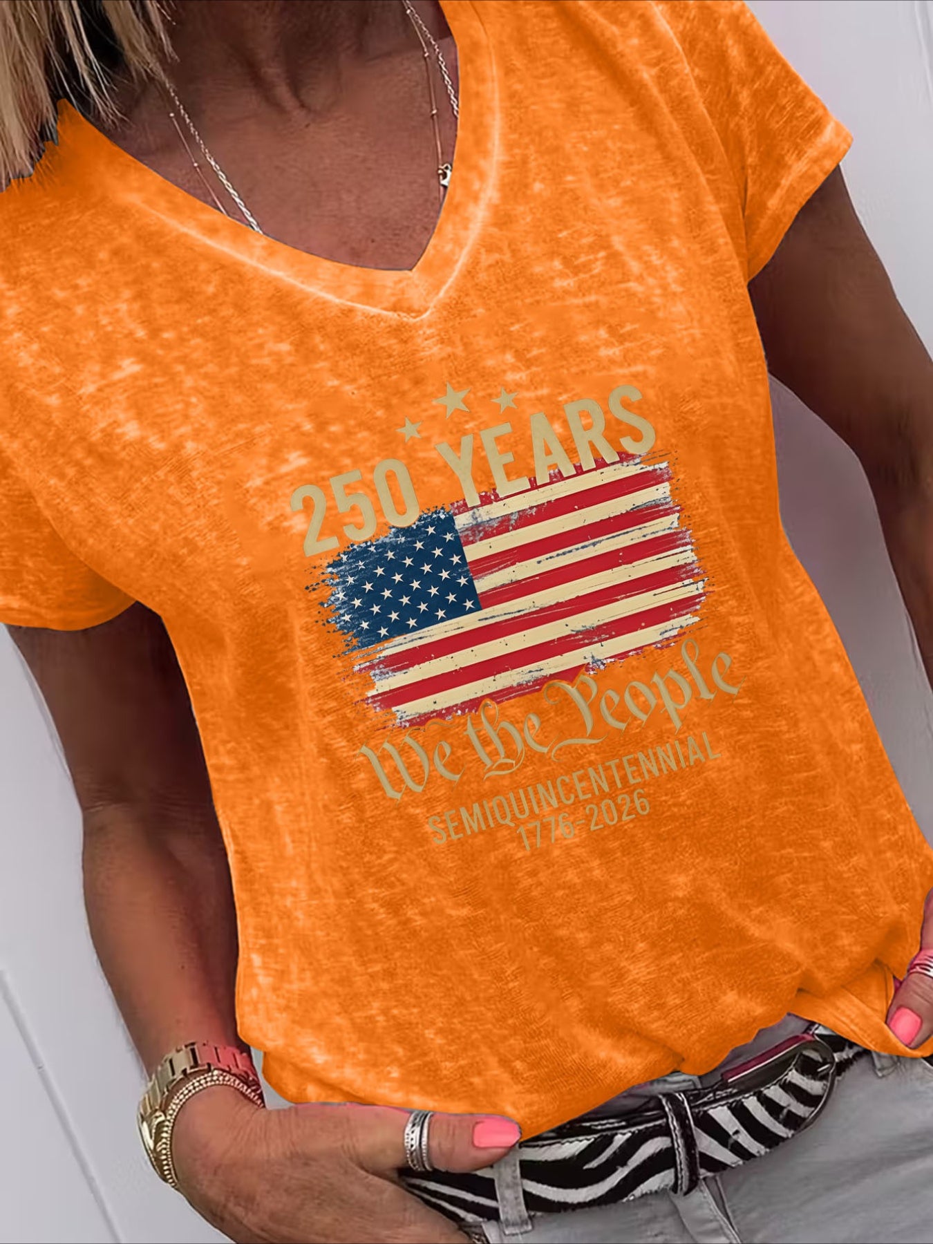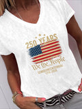 250th Anniversary Of The Founding Of the United States Short Sleeve Text Letters Printing Jersey Crew Neck T-shirt