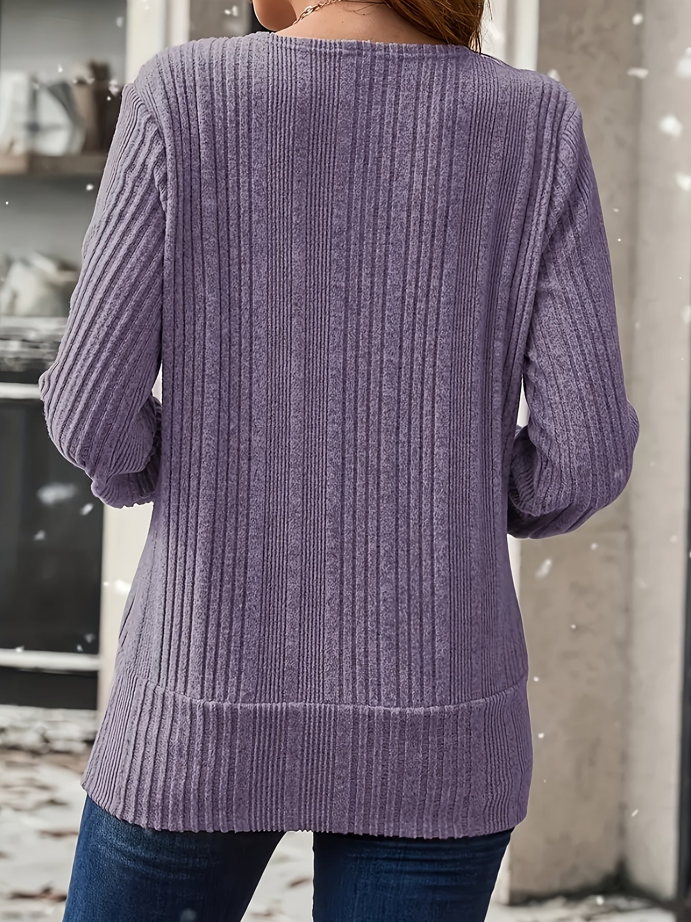Sale Striped Botton Crew Neck T-Shirt, Elegant Long Sleeve T-Shirt
