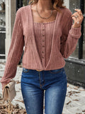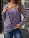 Casual Criss Cross Neck Long Sleeve T-Shirt