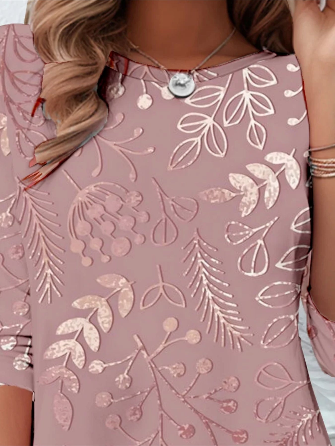 Elegant Floral Print High-Stretch Round Neck Long Sleeve Top