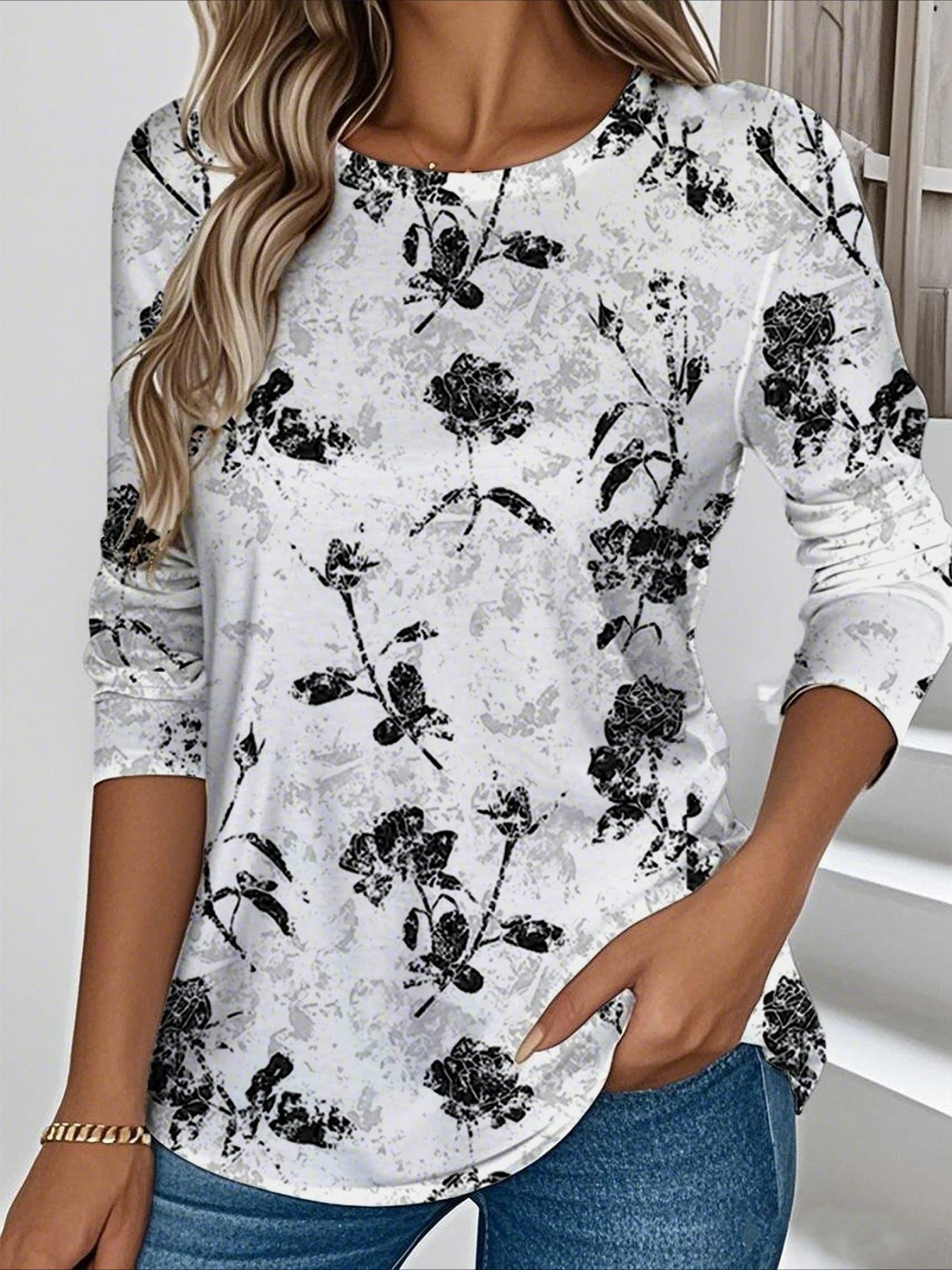 Casual Floral Crew Neck Long Sleeve T-shirt