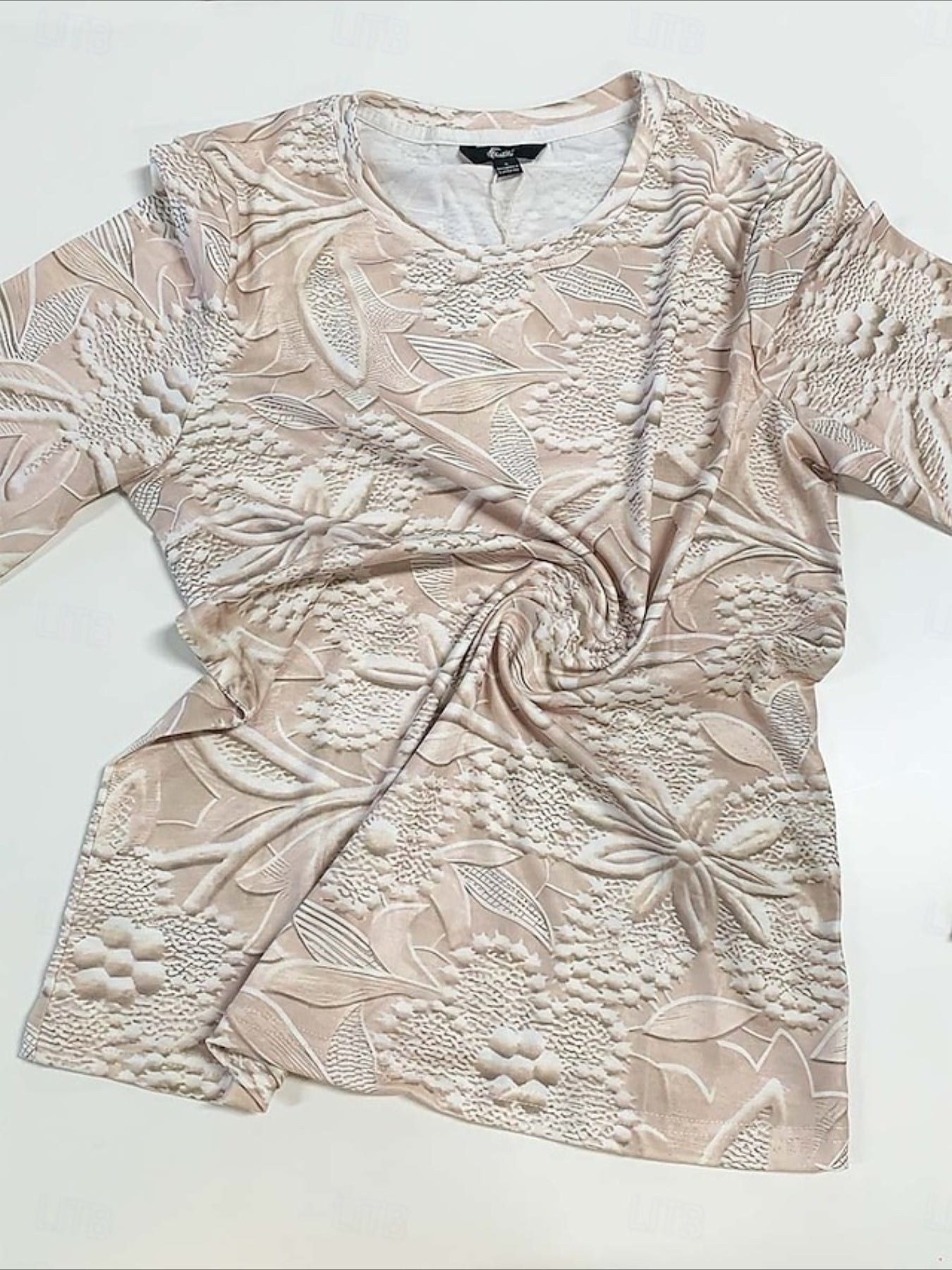 Sale Elegant Floral Print High-Stretch Round Neck Long Sleeve Top