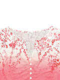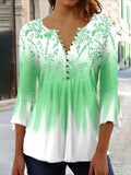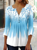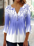 Casual Floral Print V-Neck 3/4 Sleeves Blouse