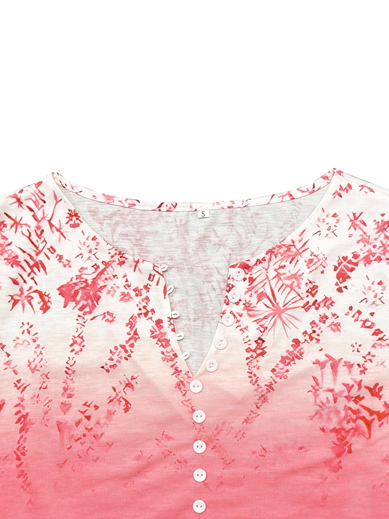Sale Button Geometric Print Long Sleeve T Shirt