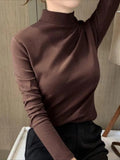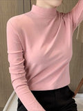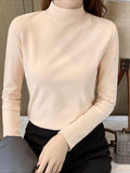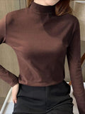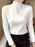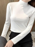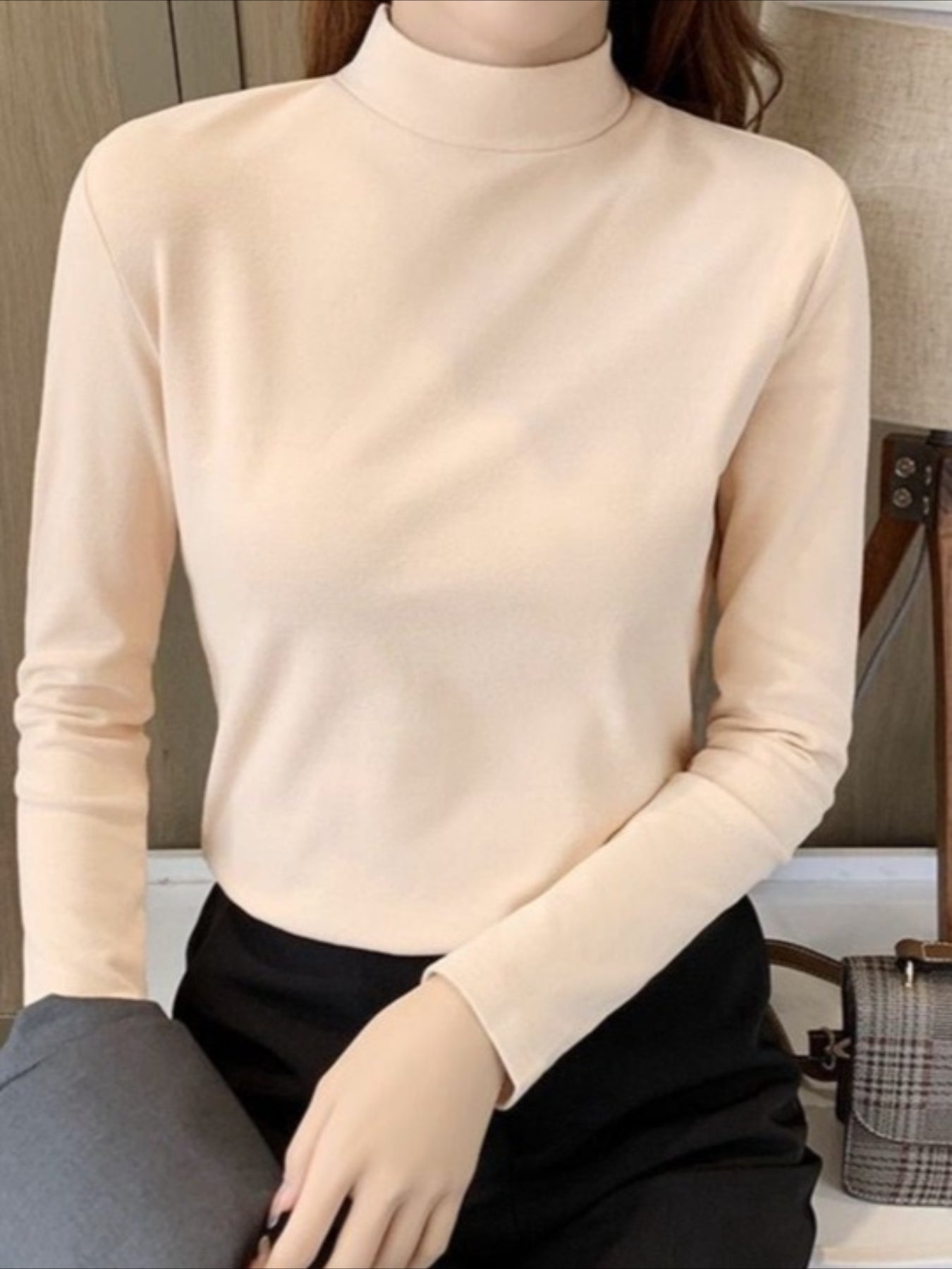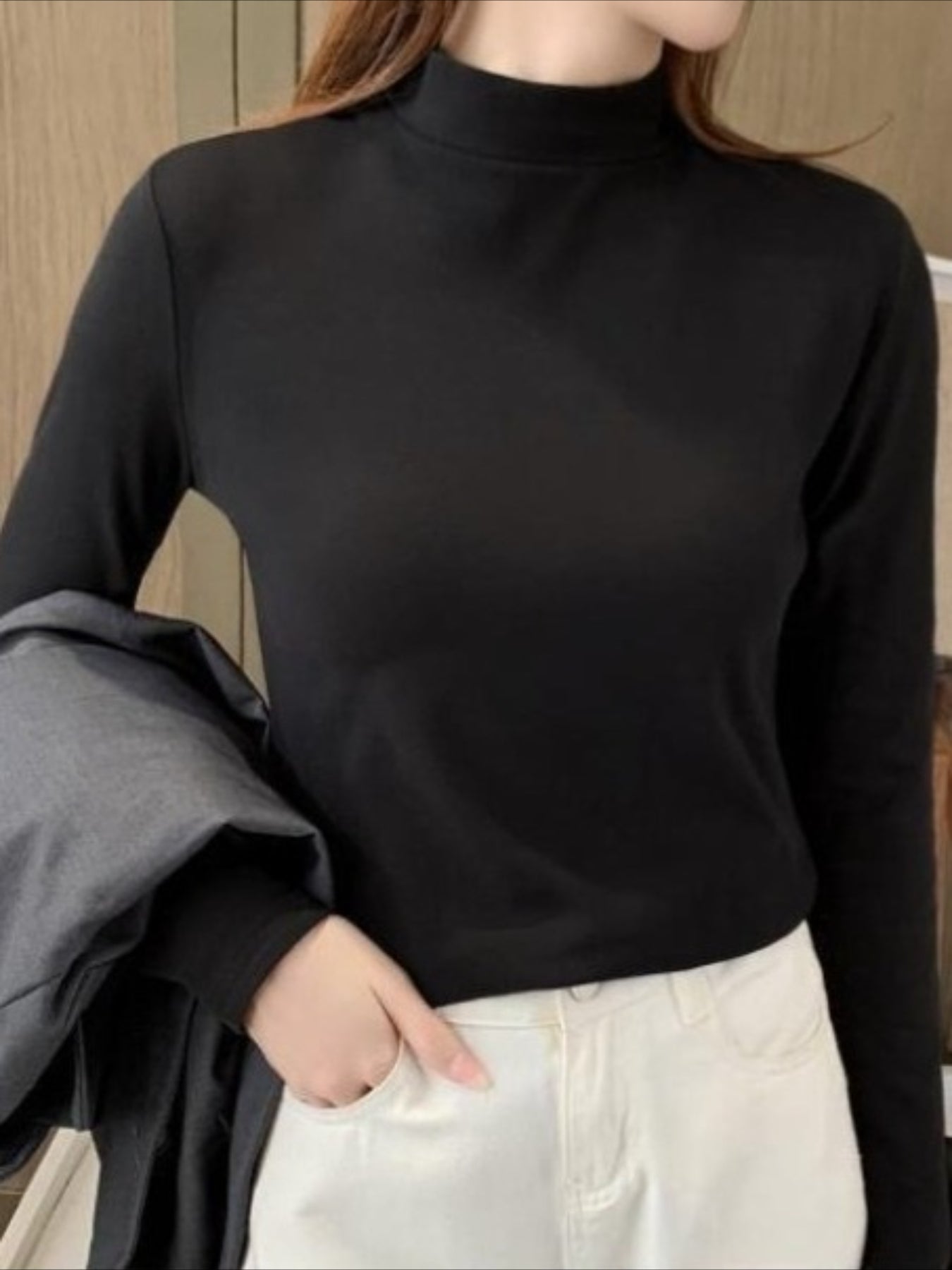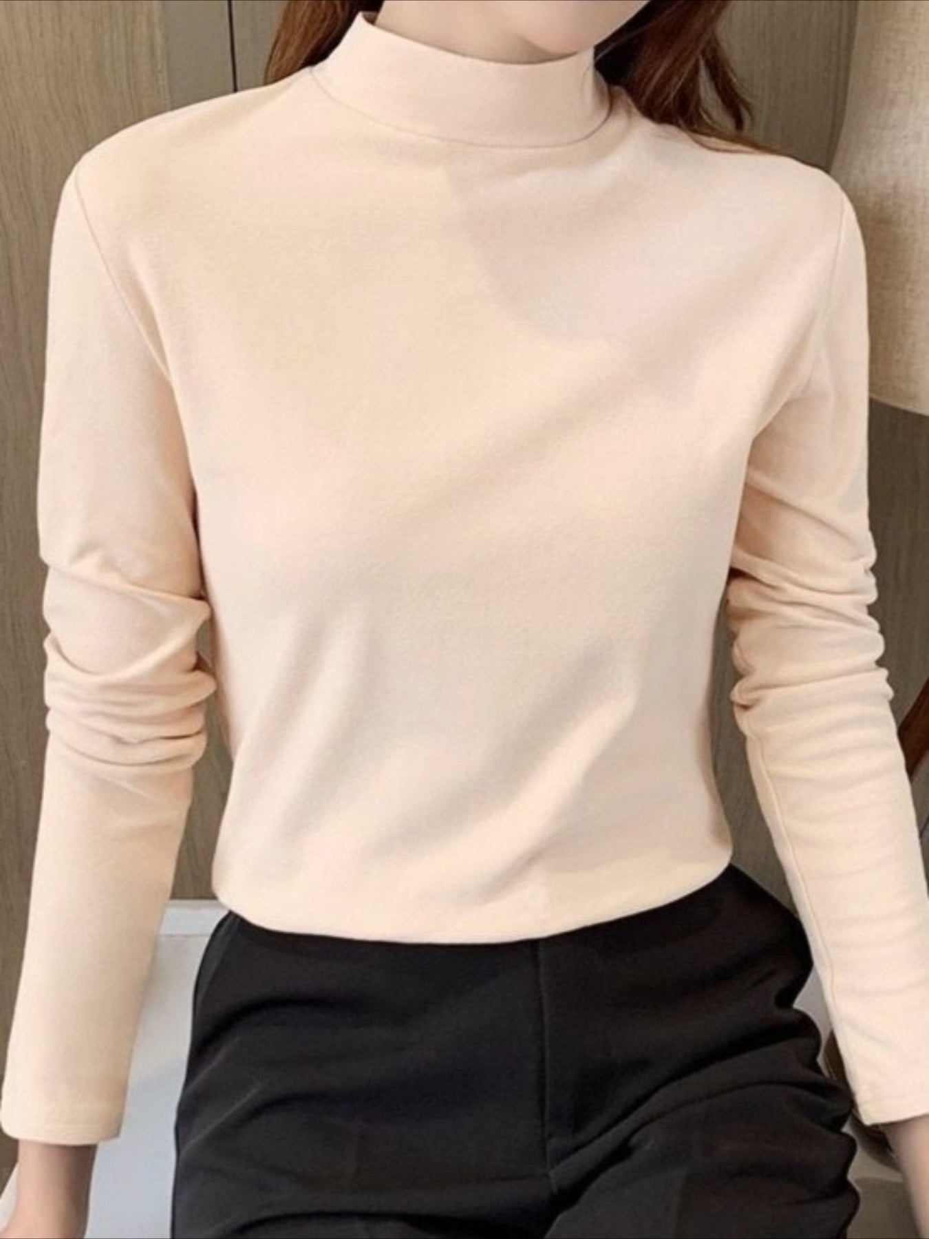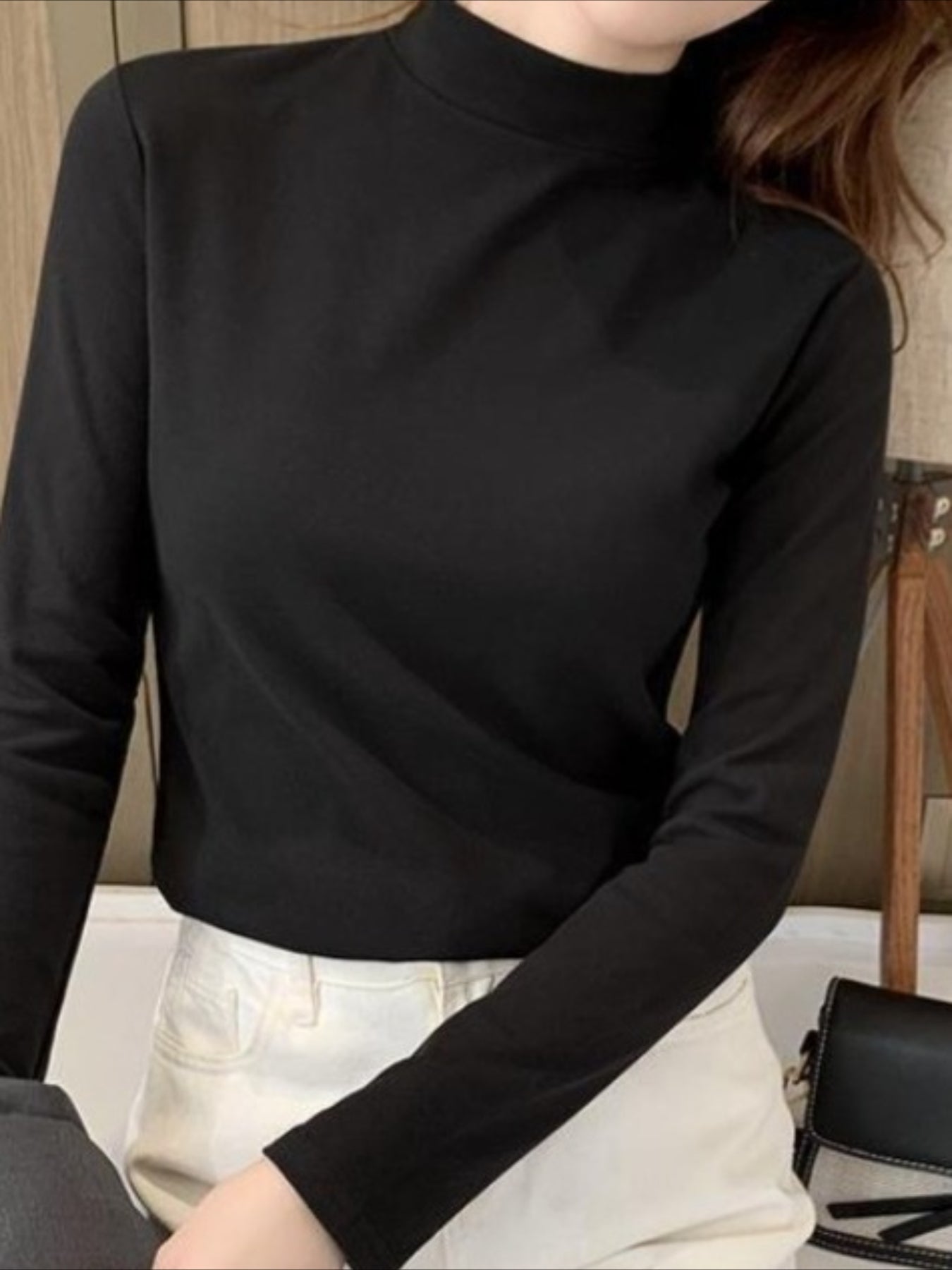 Casual Plain Half Turtleneck Skinny Soft Clouds T-shirt