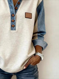 Multicolor Block Denim Patchwork Elegant Loose Shawl Collar Cardigan