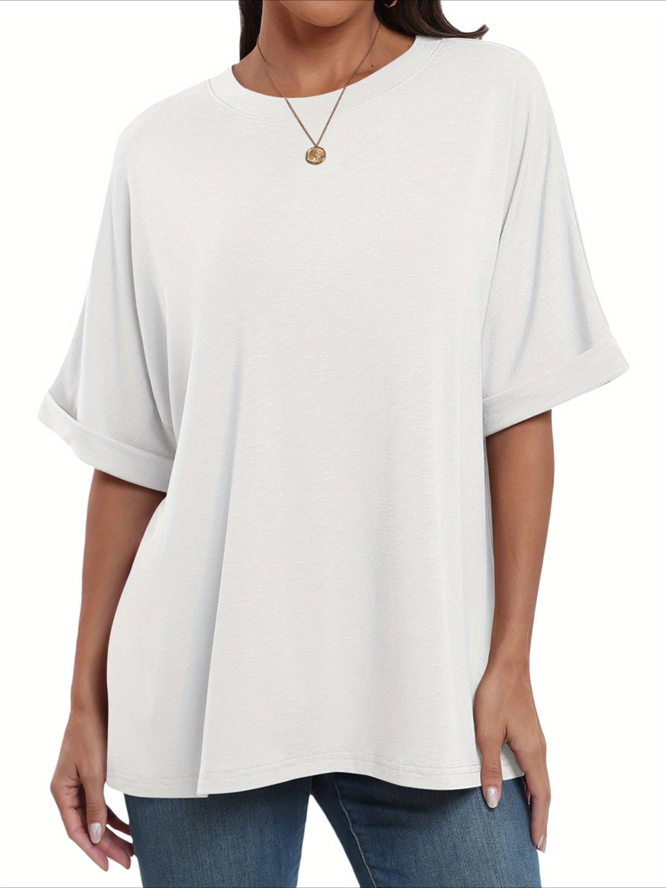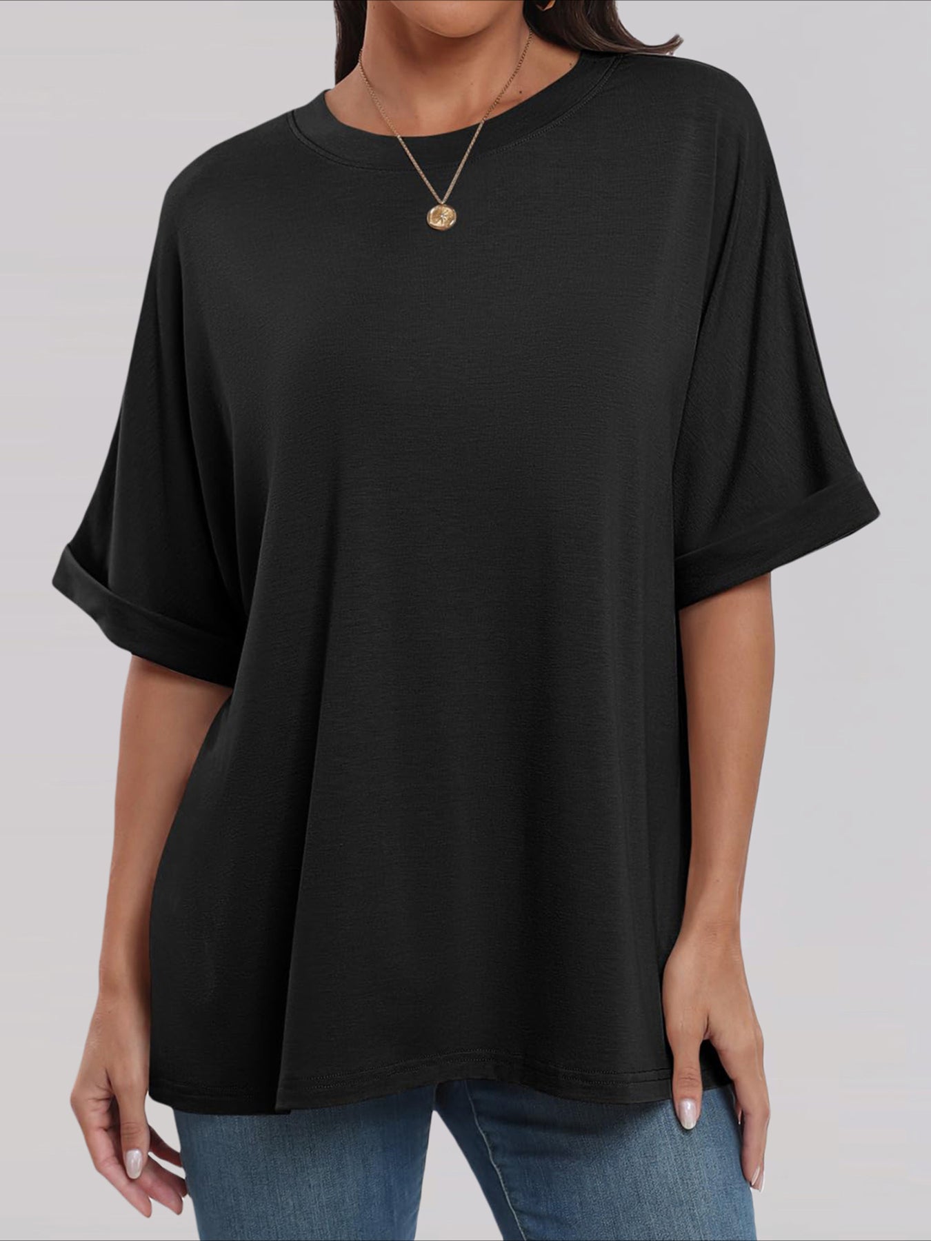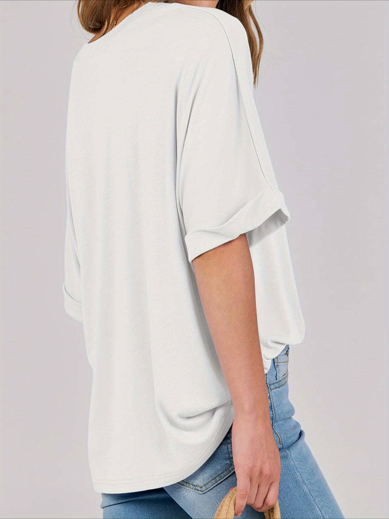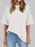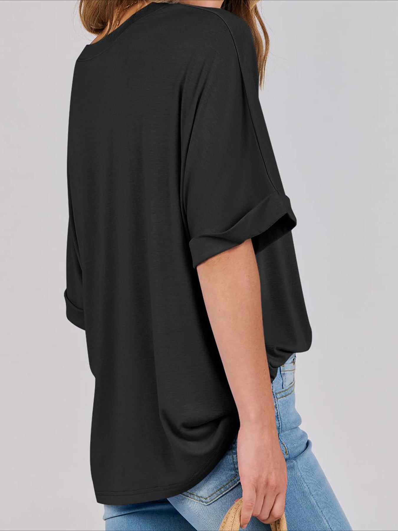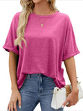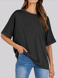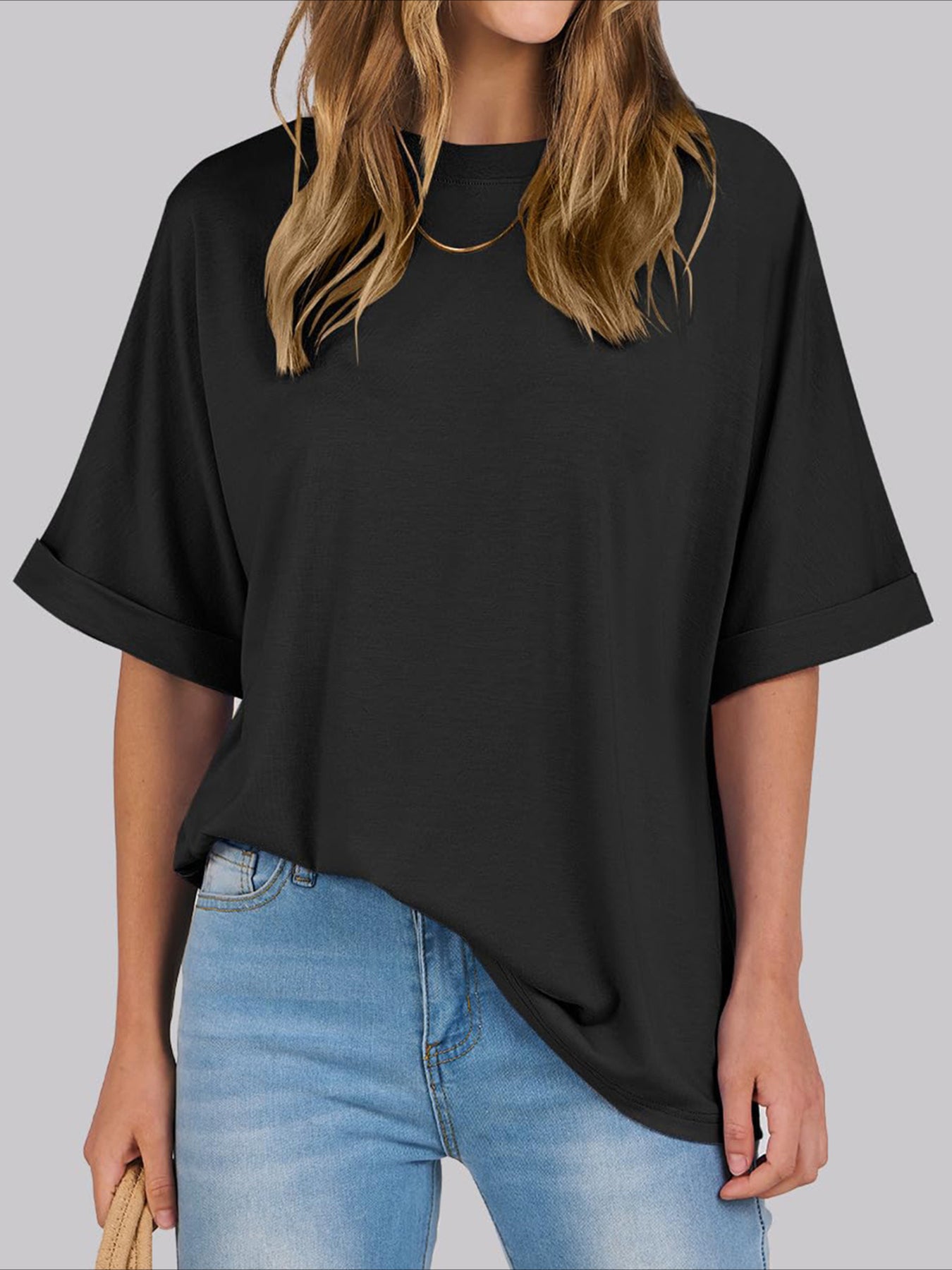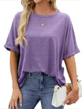 Casual Short Sleeve Crewneck Solid Color Loose T-Shirt