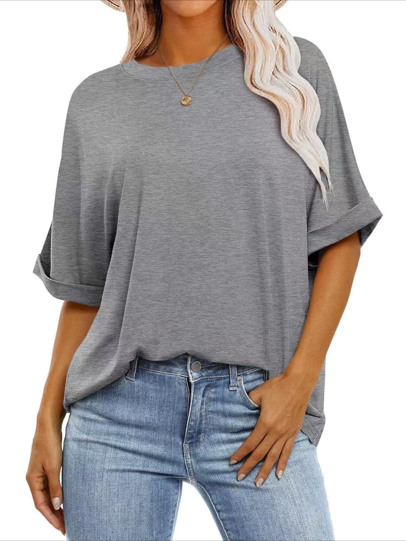 Sale Casual Short Sleeve Crewneck Solid Color Loose T-Shirt