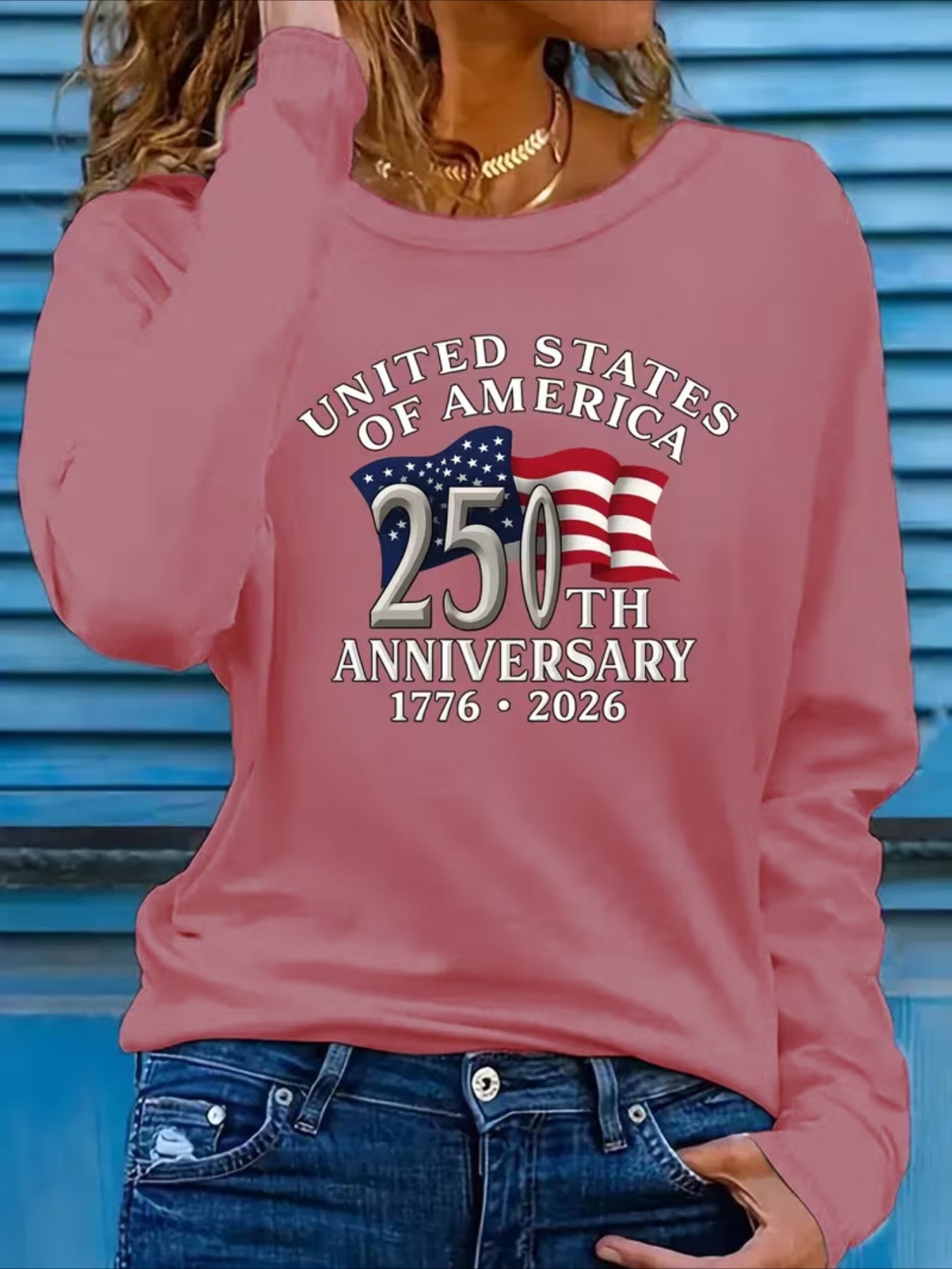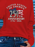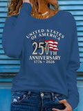 USA 250th Anniversary Printed Crew Neck Floral Long Sleeve Sweater Hoodie