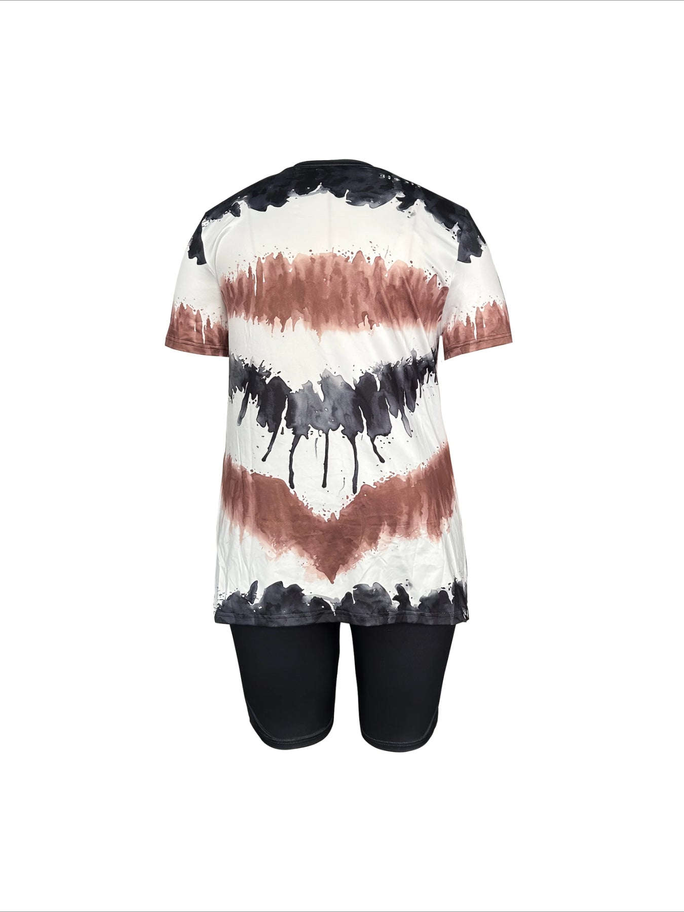 Sale Casual Two-Piece Set Color Block Print Short Sleeve Top With Side Slit & High-Waisted Shorts