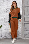 Chestnut 2pcs Color Block Pullover Loose Pant Set