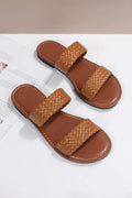 Chestnut Braided Double Band Leathered Flat Slippers