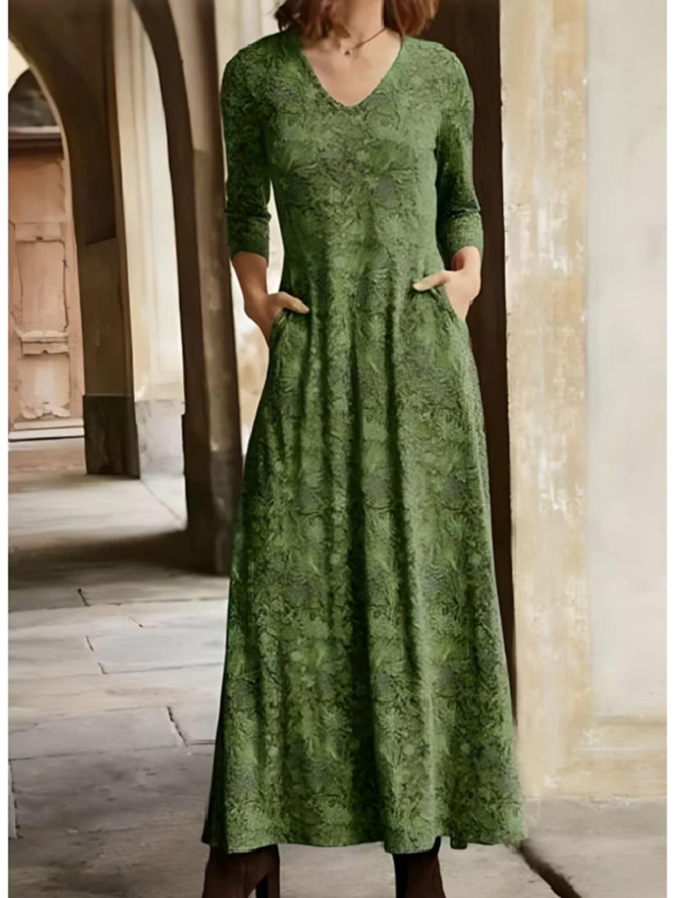 Add a touch of sweetness to your daily wardrobe with this V-neck, long dress featuring...