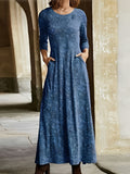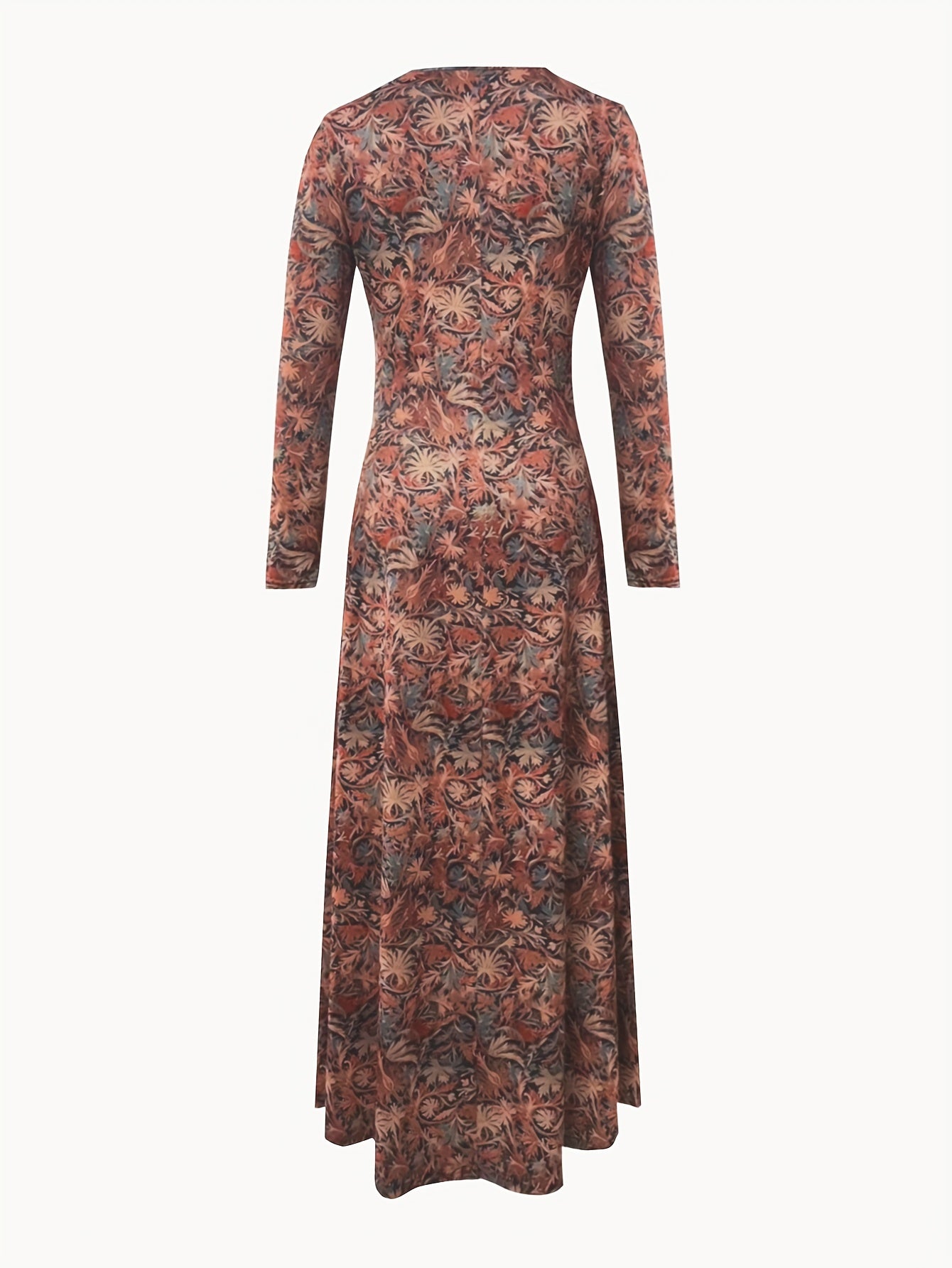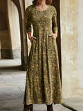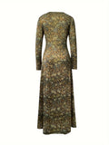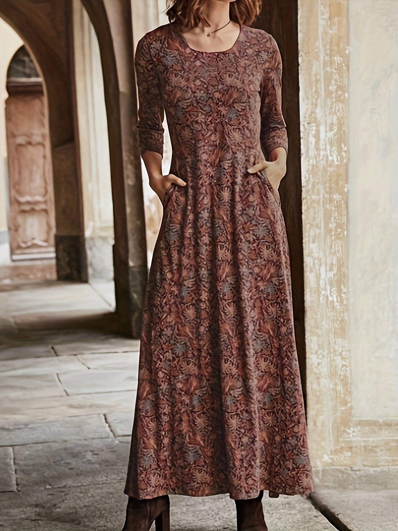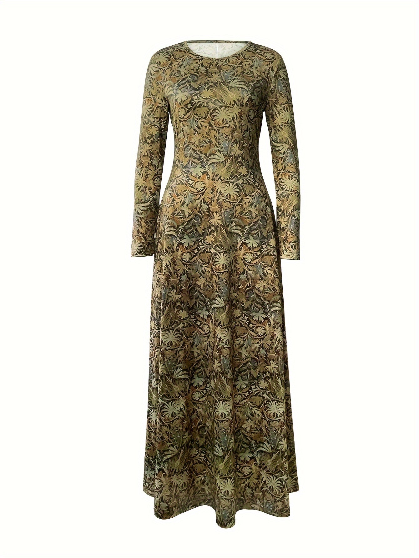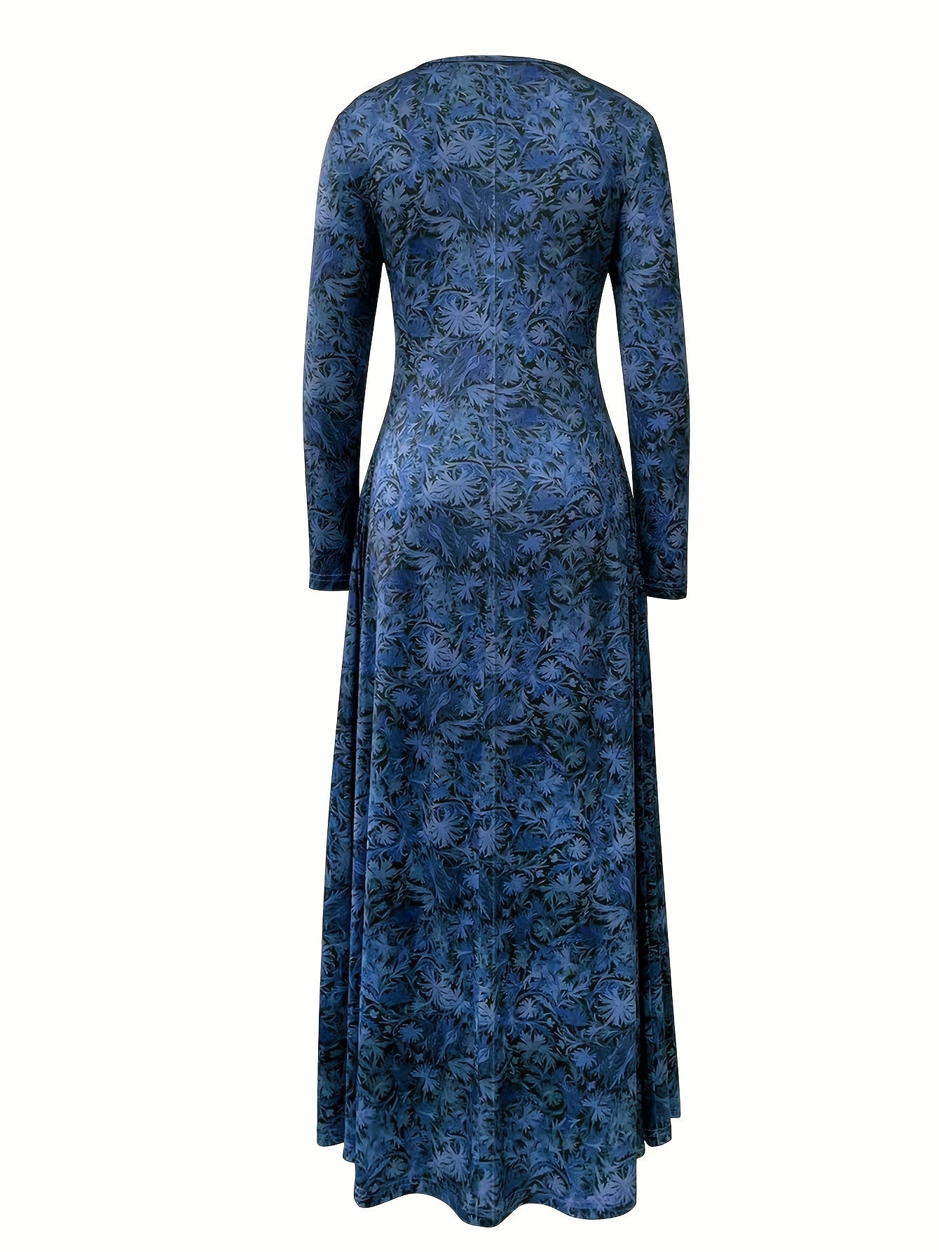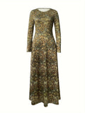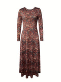 Chic Floral Print Maxi Dress - Stylish Crew Neck Long Sleeve - Comfortable Casual Wear