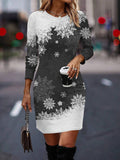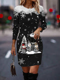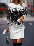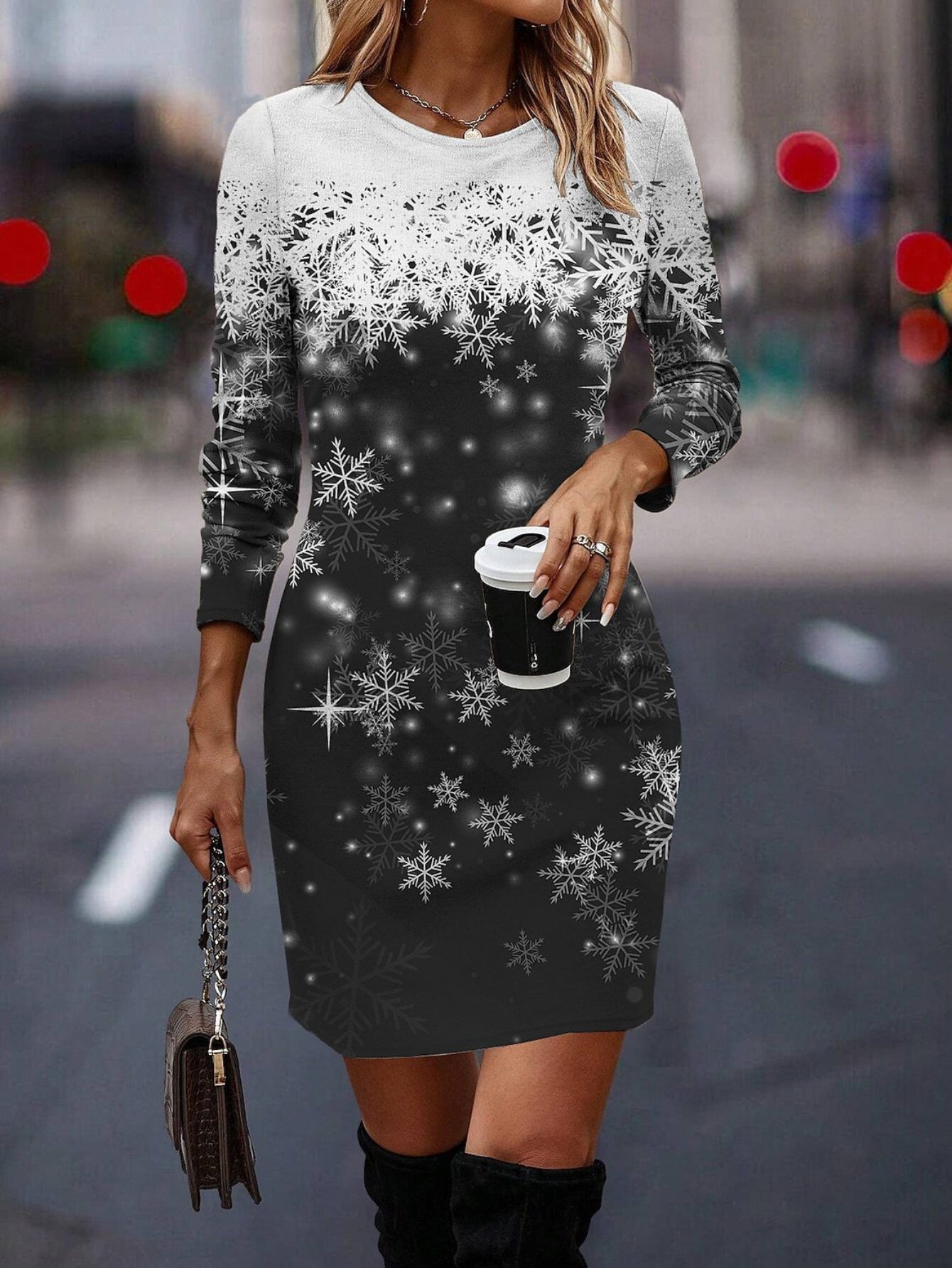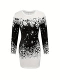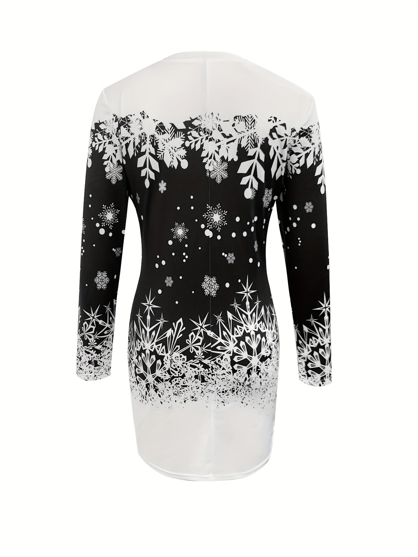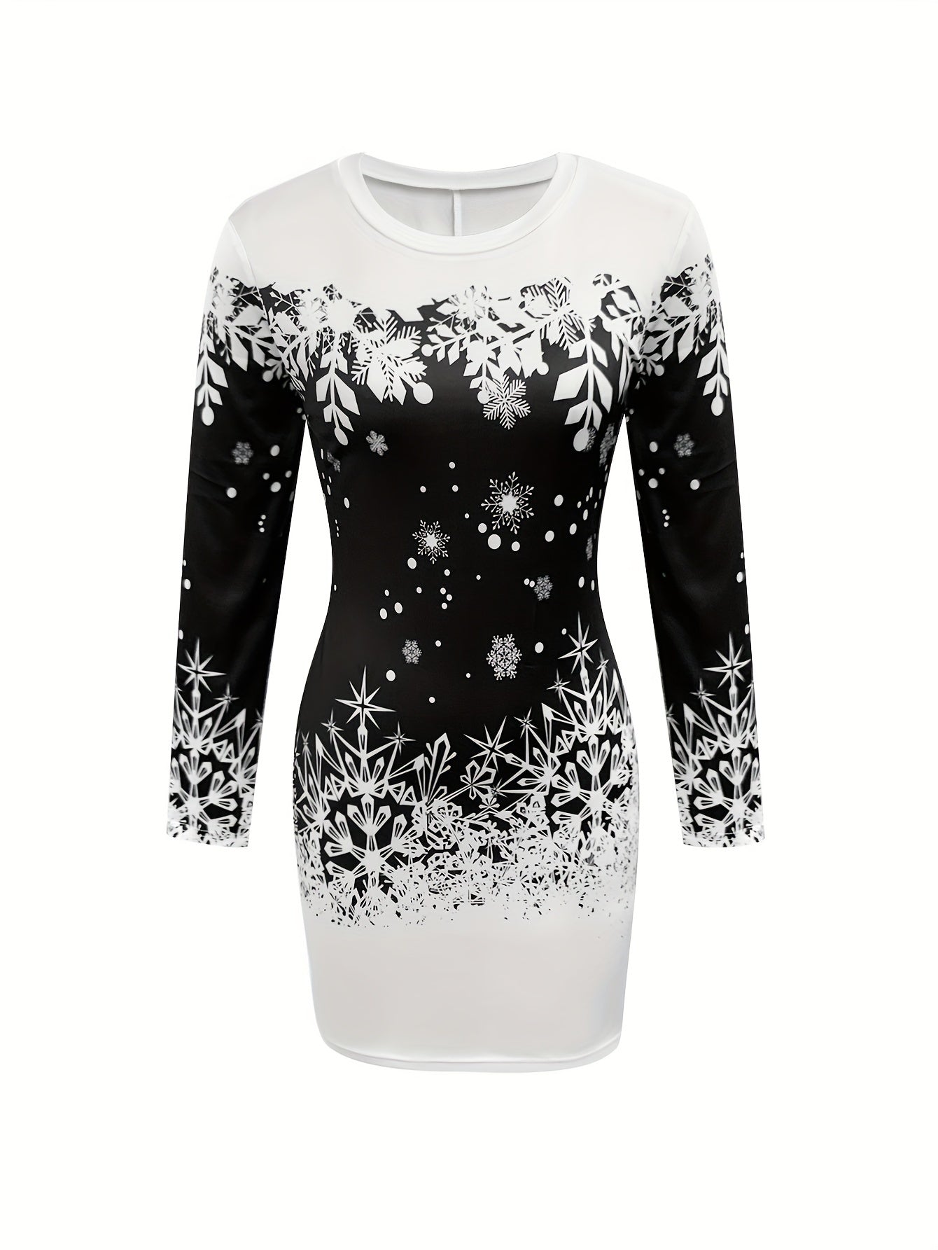 Chic Snowflake Print Bodycon Dress for Women - Vintage Style, Stretchy Polyester Blend