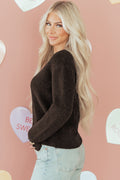 Chicory Coffee Heart Metal Button V Neck Cardigan Sweater