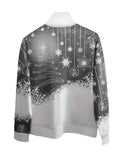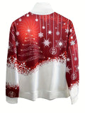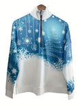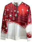 Christmas Print Zip Stand Collar Sweatshirt, Casual Long Sleeve Loose Sweatshirt