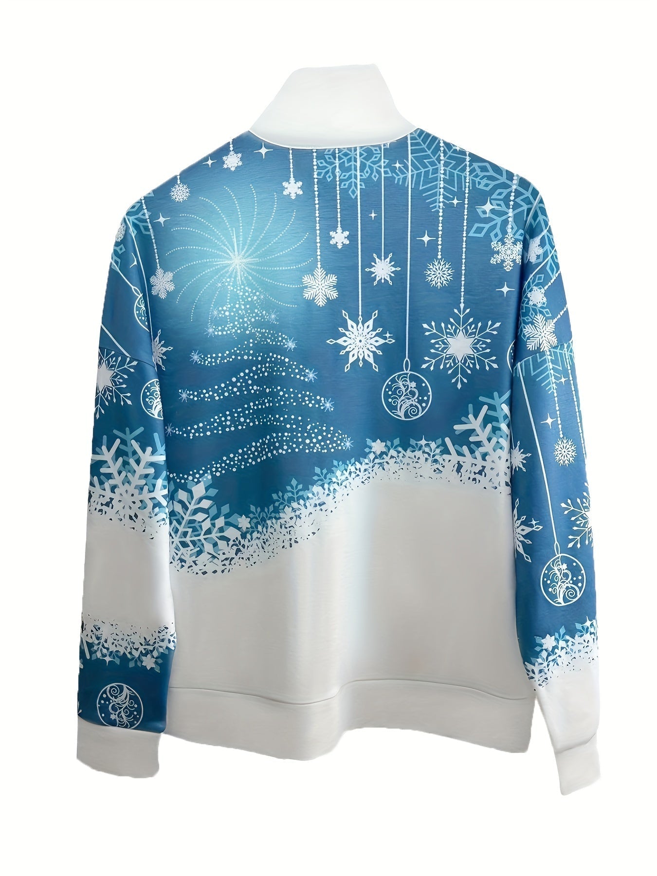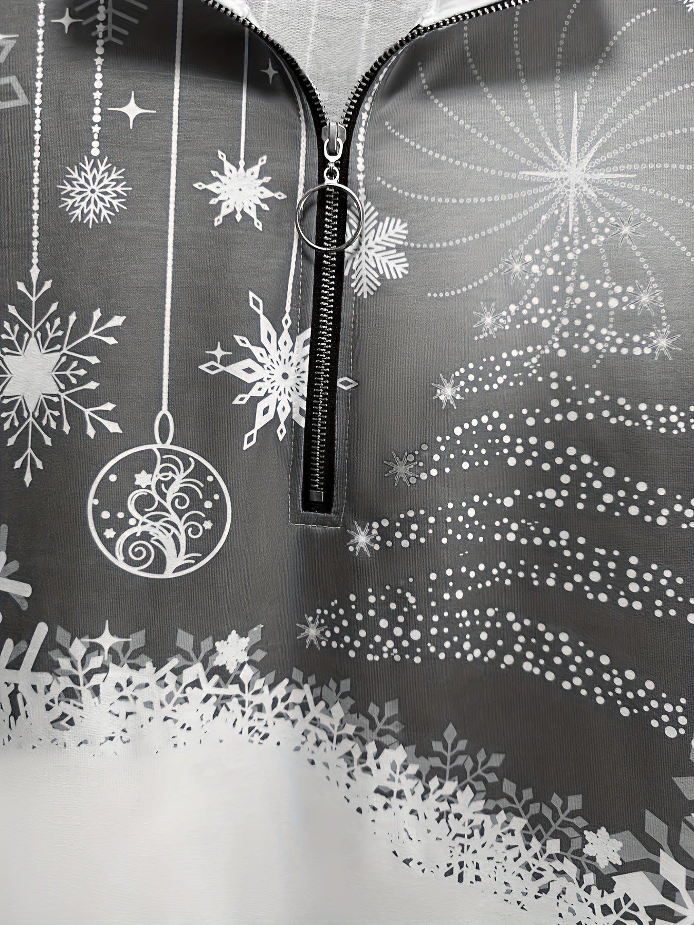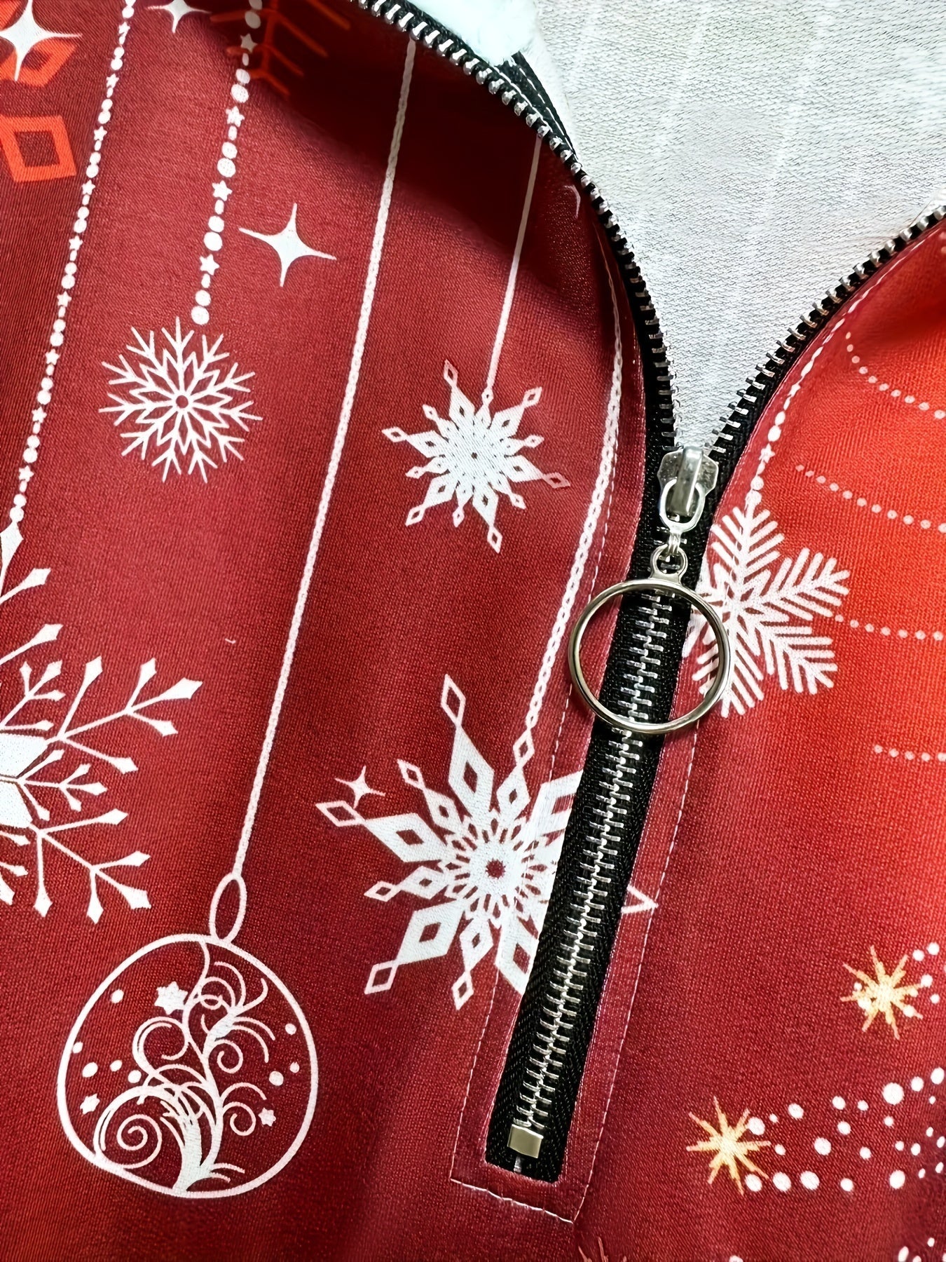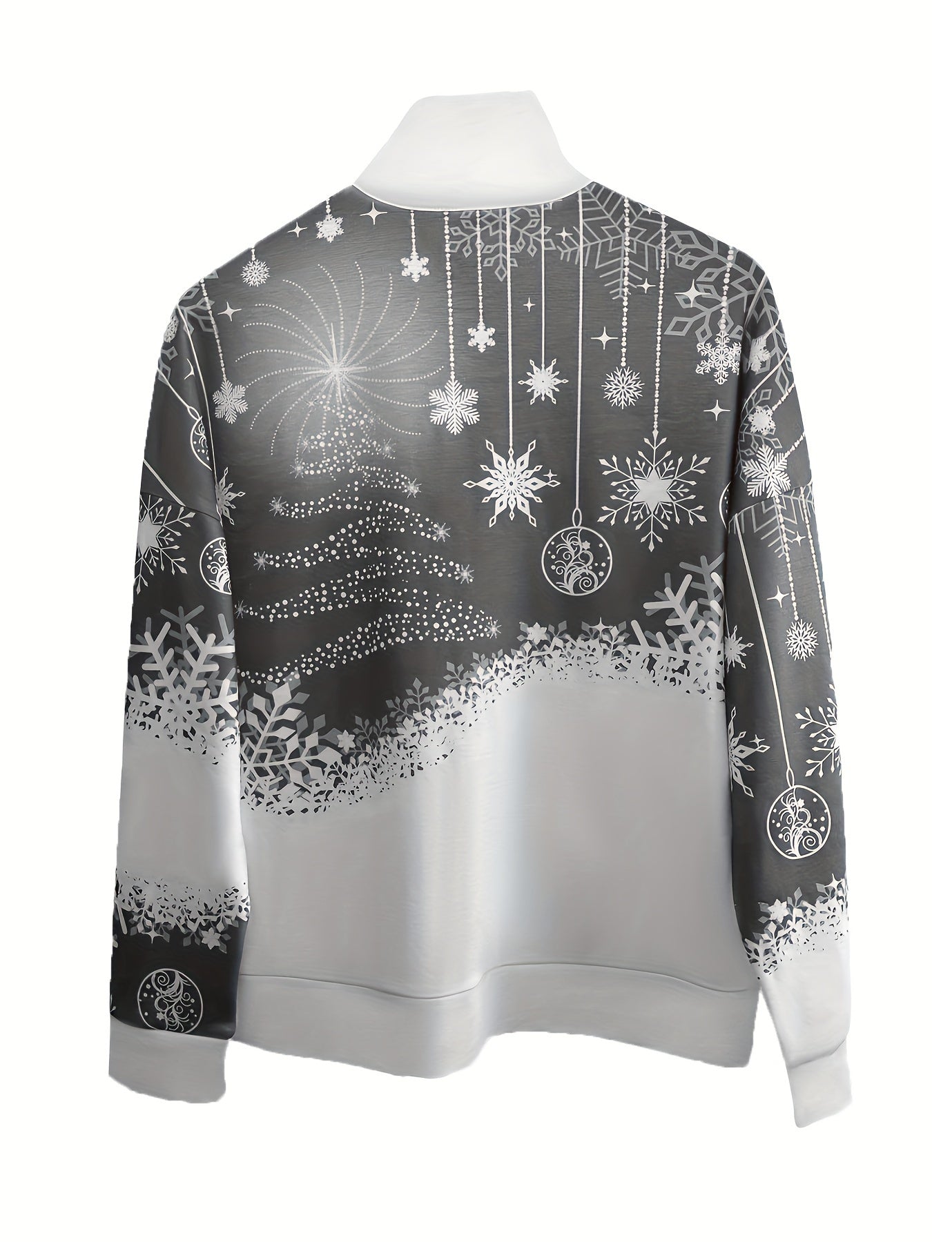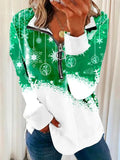 Sale Christmas Print Zip Stand Collar Sweatshirt, Casual Long Sleeve Loose Sweatshirt