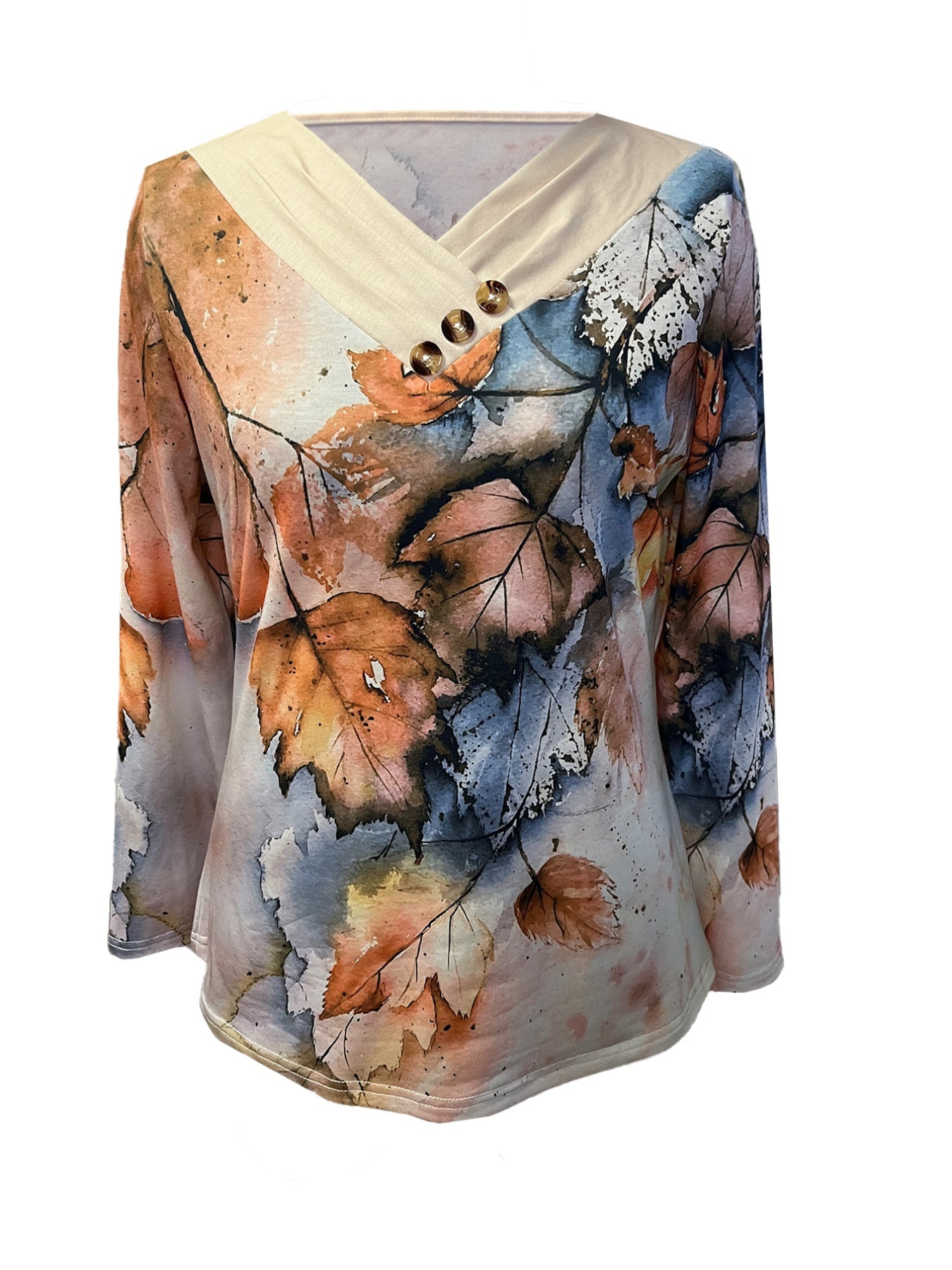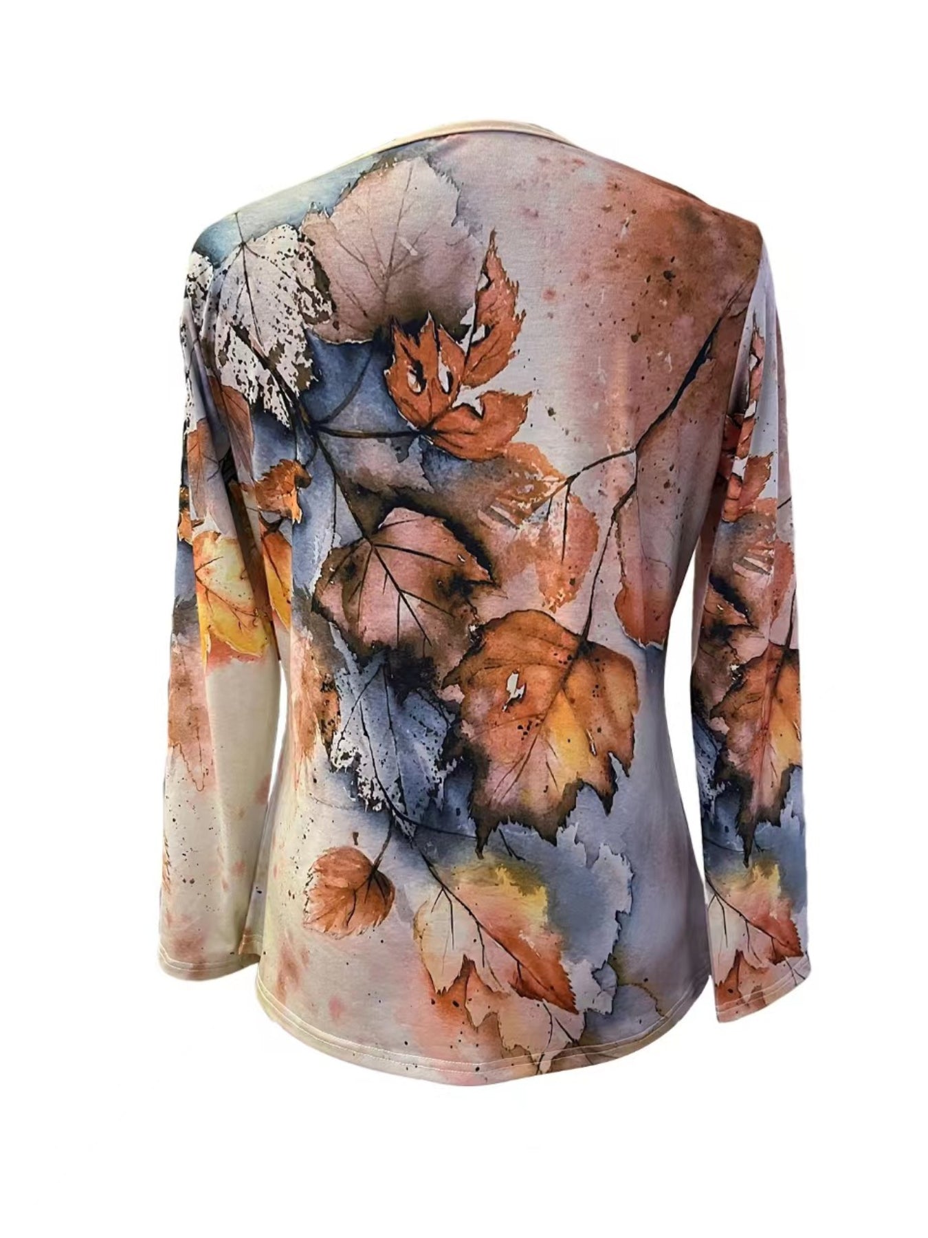 Women Floral Long Sleeve Comfy Casual Sweater Tee