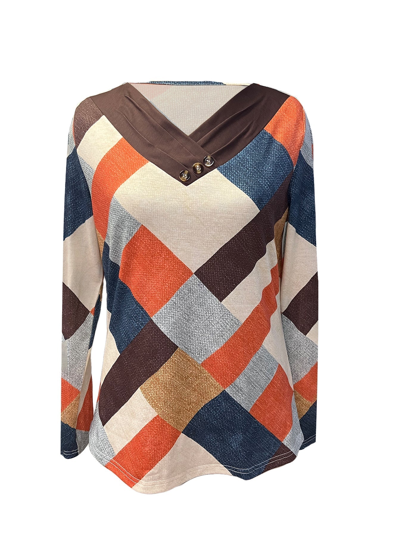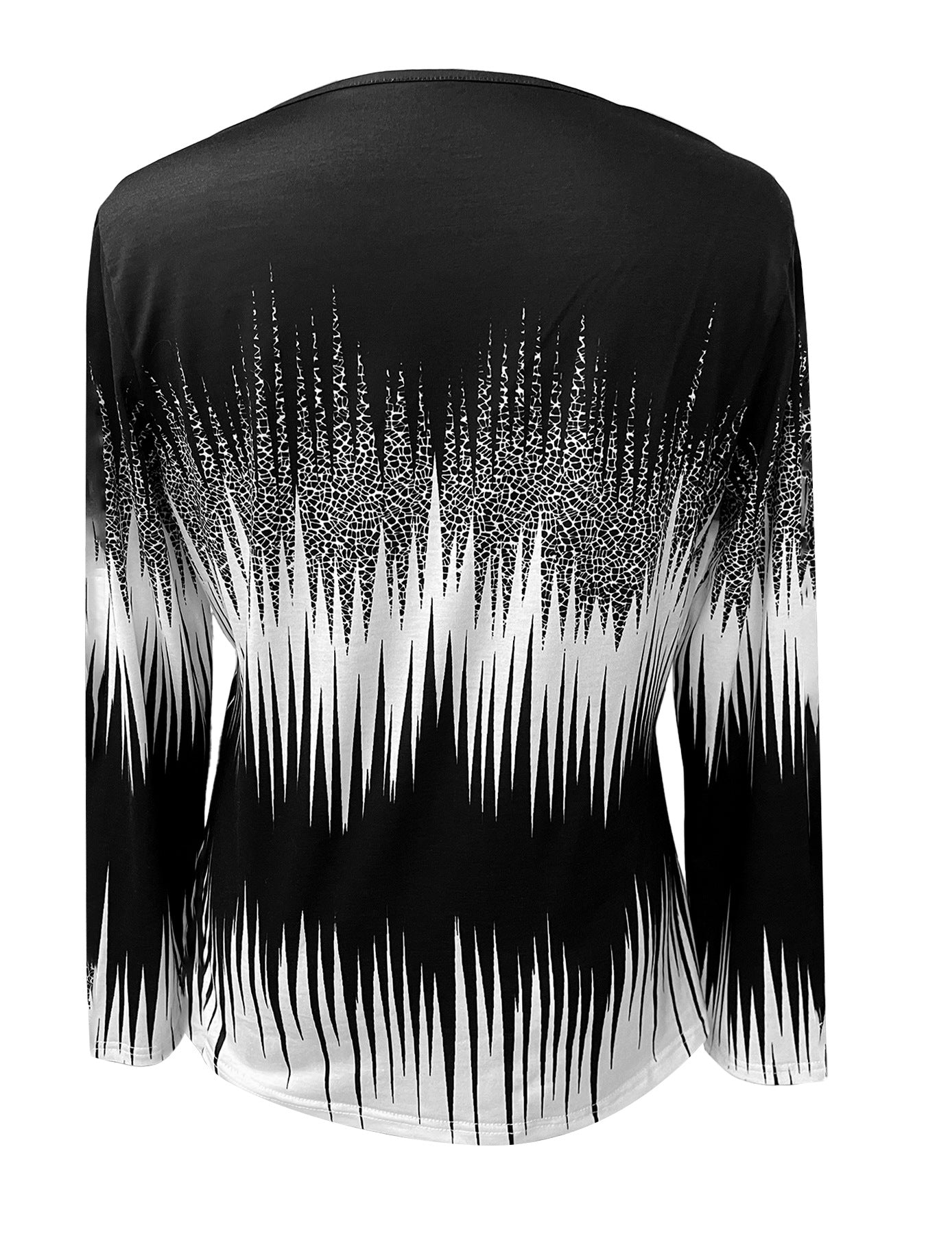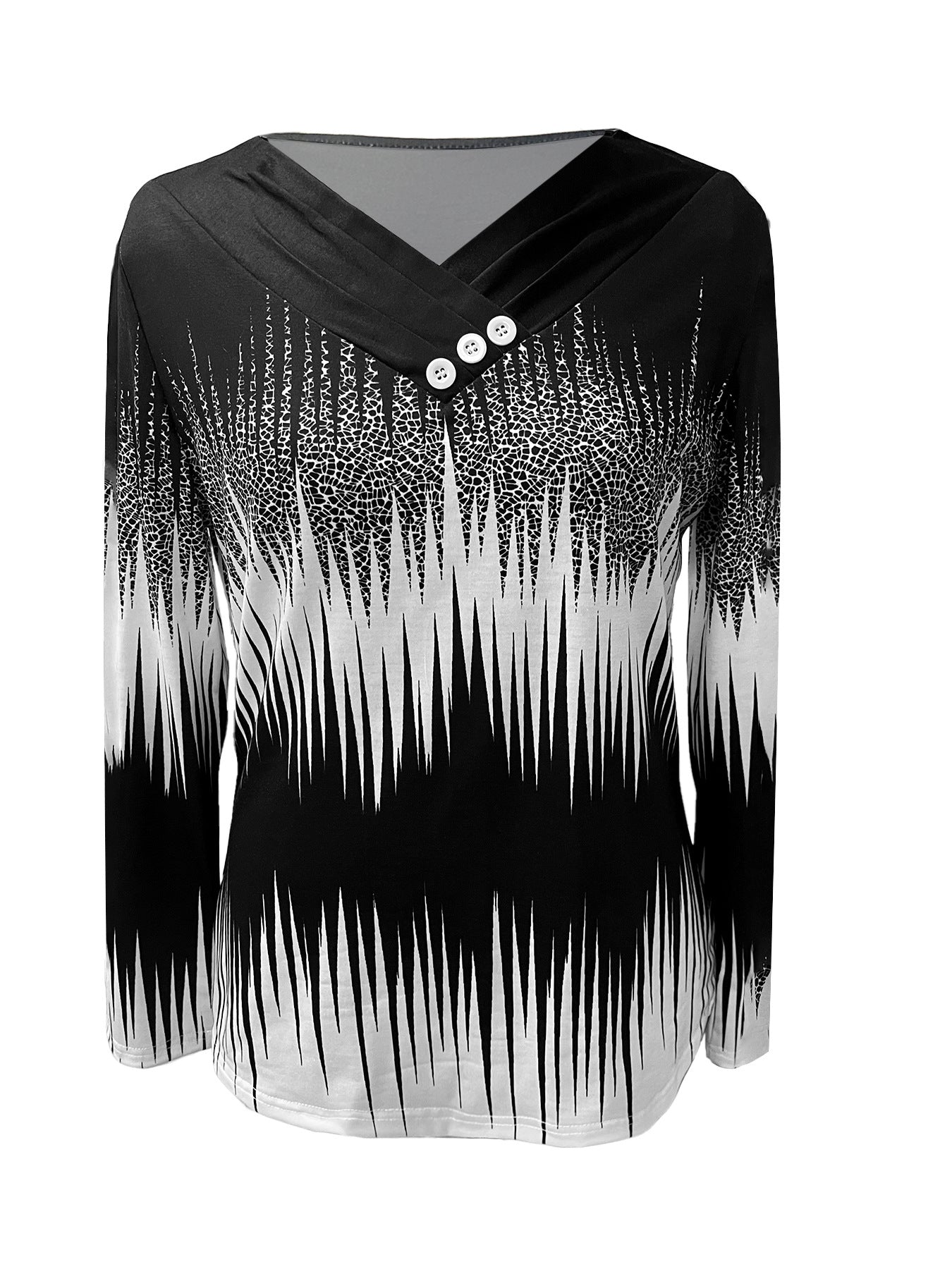 Sale V Neck Long Sleeve Geometric Regular Micro-Elasticity Regular Fit Blouse