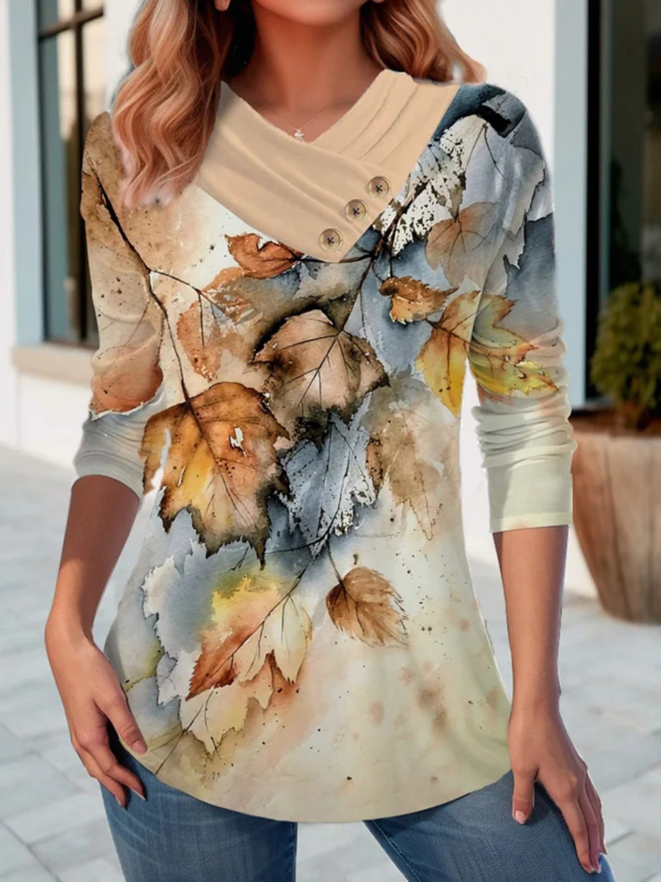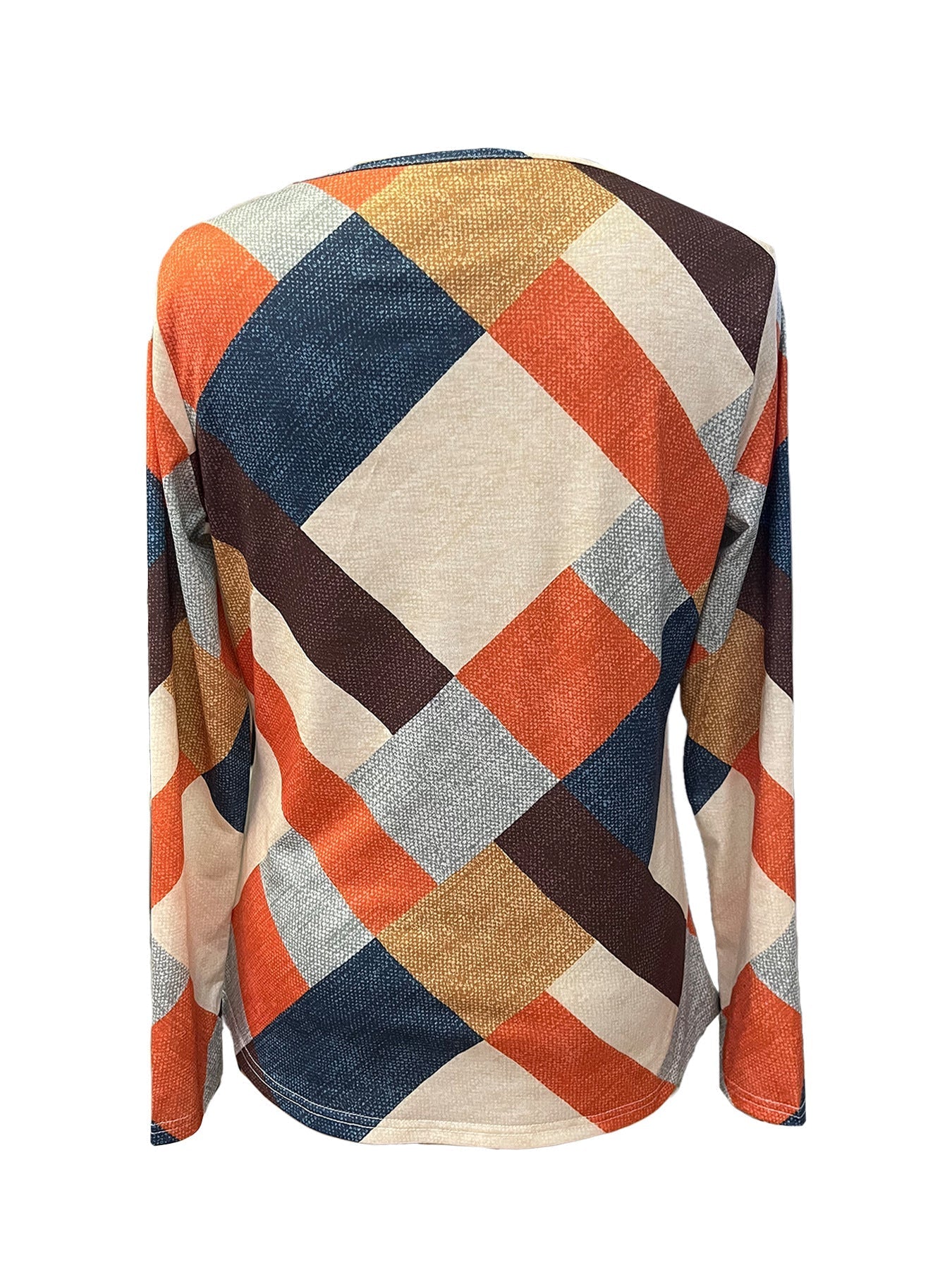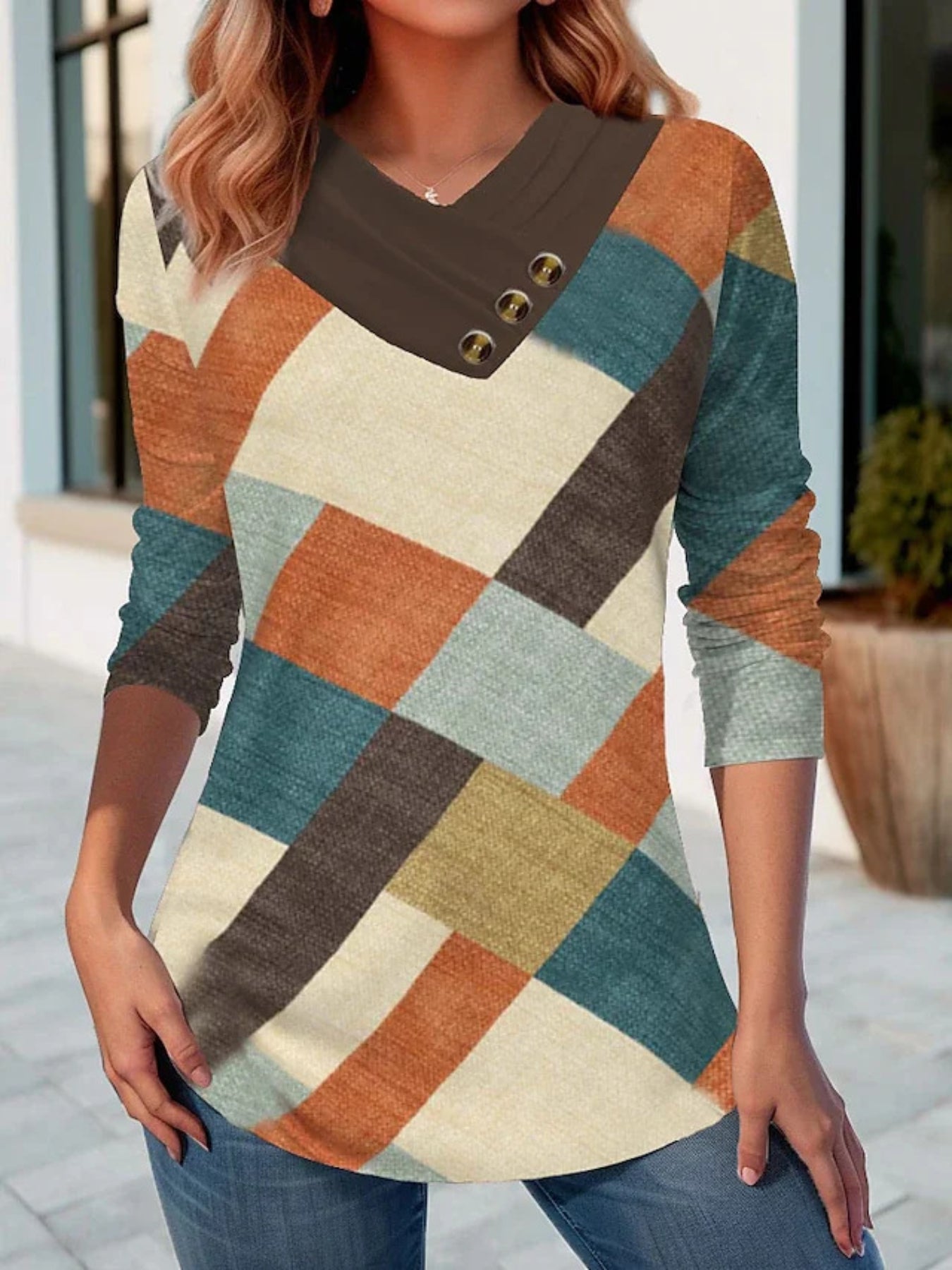 Sale V Neck Long Sleeve Geometric Regular Micro-Elasticity Regular Fit Blouse