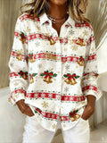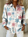 Sale Women's Button Print Long Sleeve Casual Basic Shirt Collar Shirt Blouse