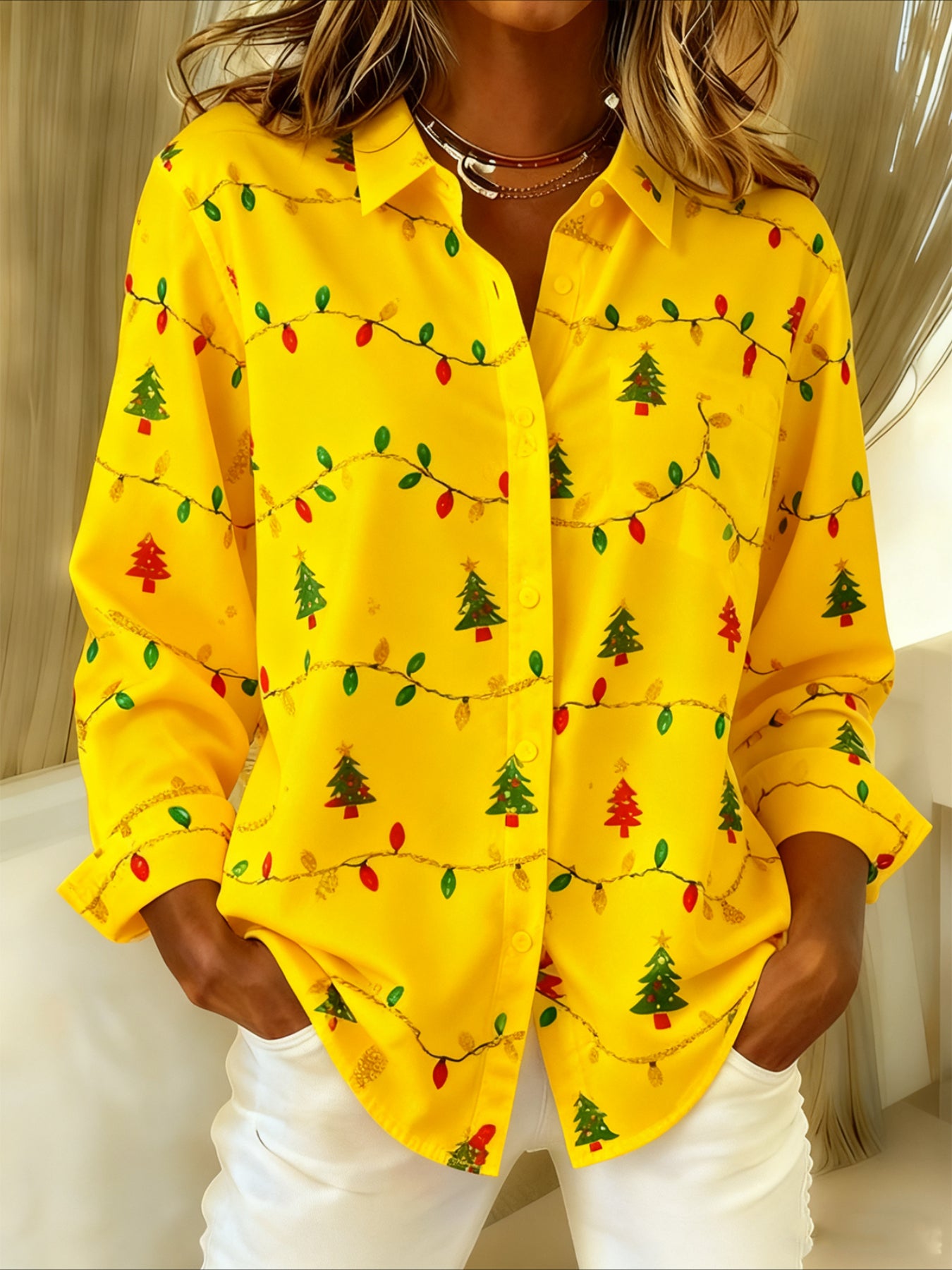Casual Christmas Tree Printing Long Sleeve Sweatshirt