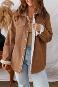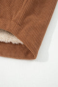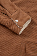 Cinnamon Fleece Lined Buttoned Flap Pockets Corduroy Jacket