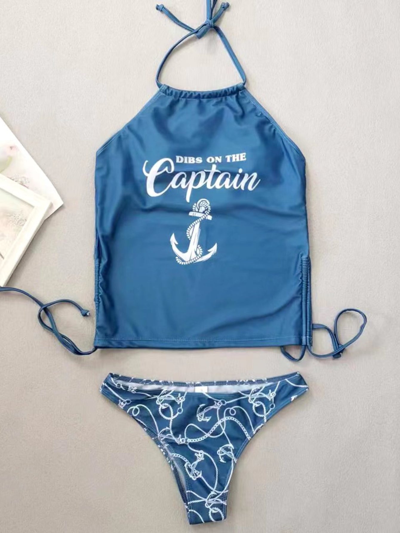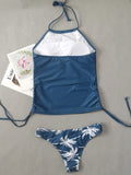 Sale Tribal Print 2 Piece Set Tankini, V Neck Hanky Hem High Cut Swimsuits