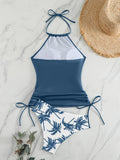 Sale Women's Vacay Tankini Set, Plus Size Floral Pattern Drawstring Front Top & Boxer Short Bottom Swimsuit 2 Piece Set