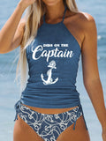 Sale 2 piece Women's Halter V-Neck Tankini Set - Stretchy, High-Cut Swimsuit in Solid Colors
