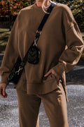 Coffee Solid Color High Low Pullover and Skinny Pants Set