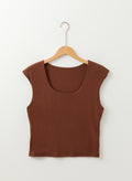 Coffee Solid Color U Neck Slim Fit Tank Top