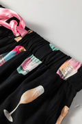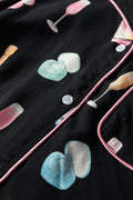 Color black Christmas Wine Glass Print Bow Knot Two Piece Pajama Set