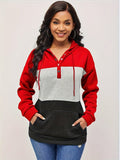 Sale Women's Color Block Quarter Zip T-Shirt - Casual Long Sleeve Top