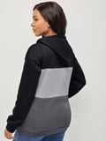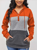 Sale Color Block Button Drawstring Hoodie, Casual Long Sleeve Kangaroo Pocket Sweatshirt