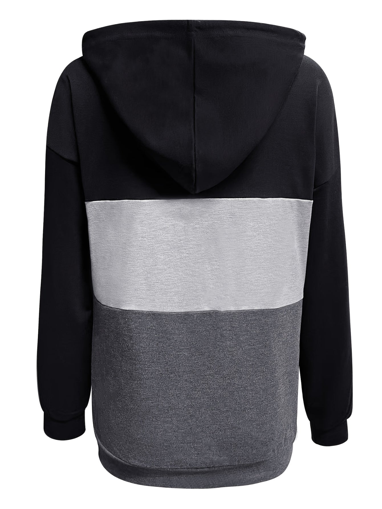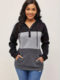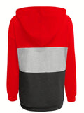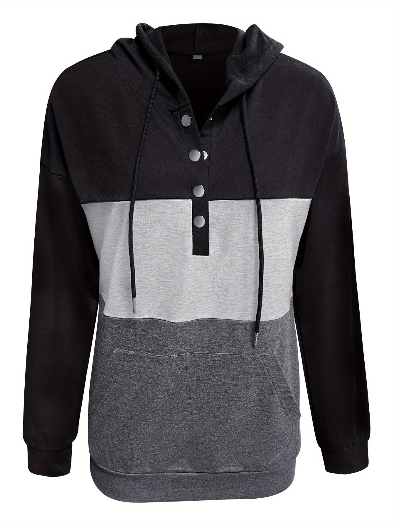 Color Block Button Drawstring Hoodie, Casual Long Sleeve Kangaroo Pocket Sweatshirt
