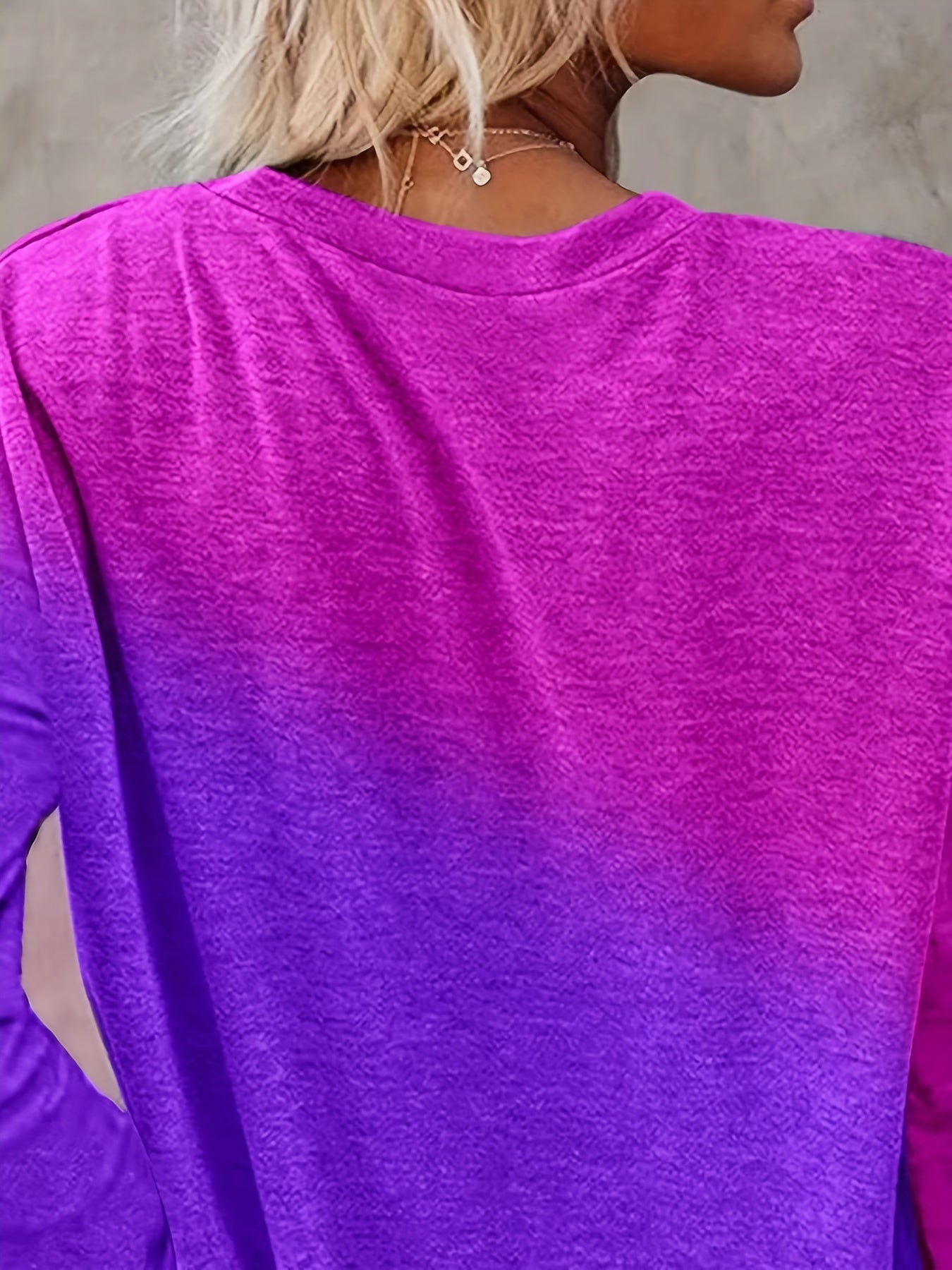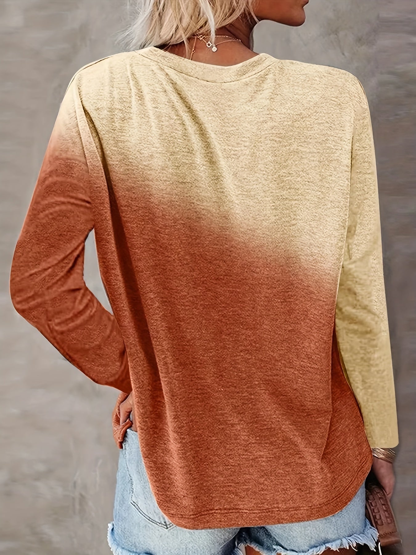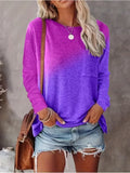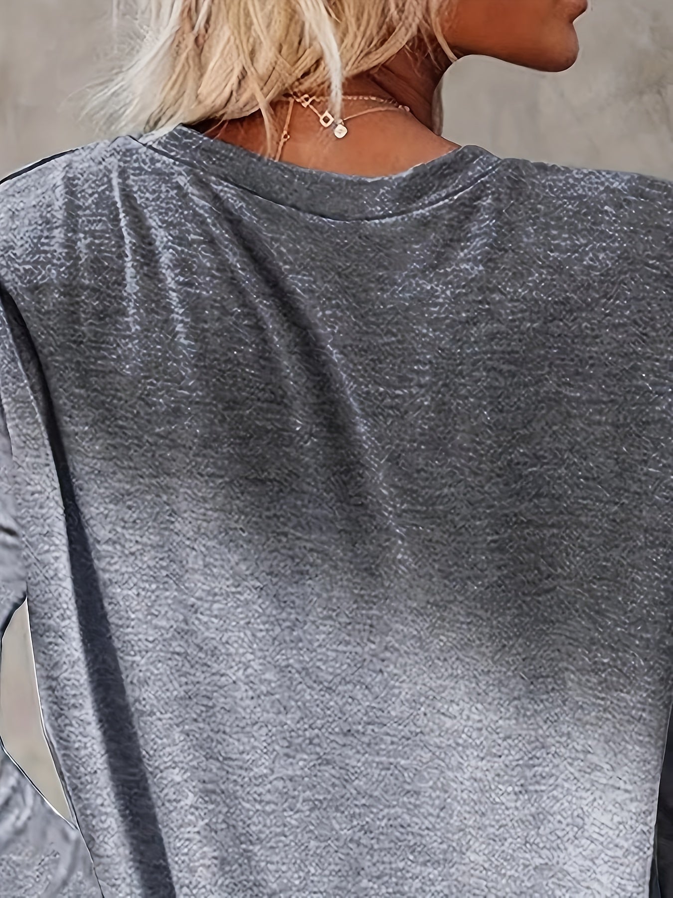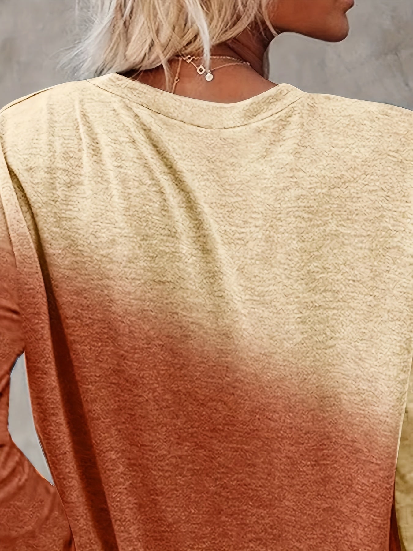 Sale Color Block Crew Neck T-shirt, Casual Long Sleeve Top