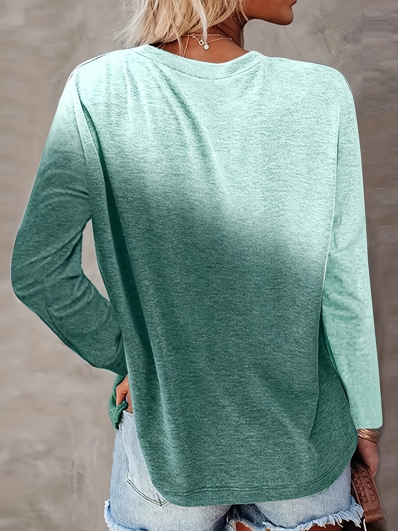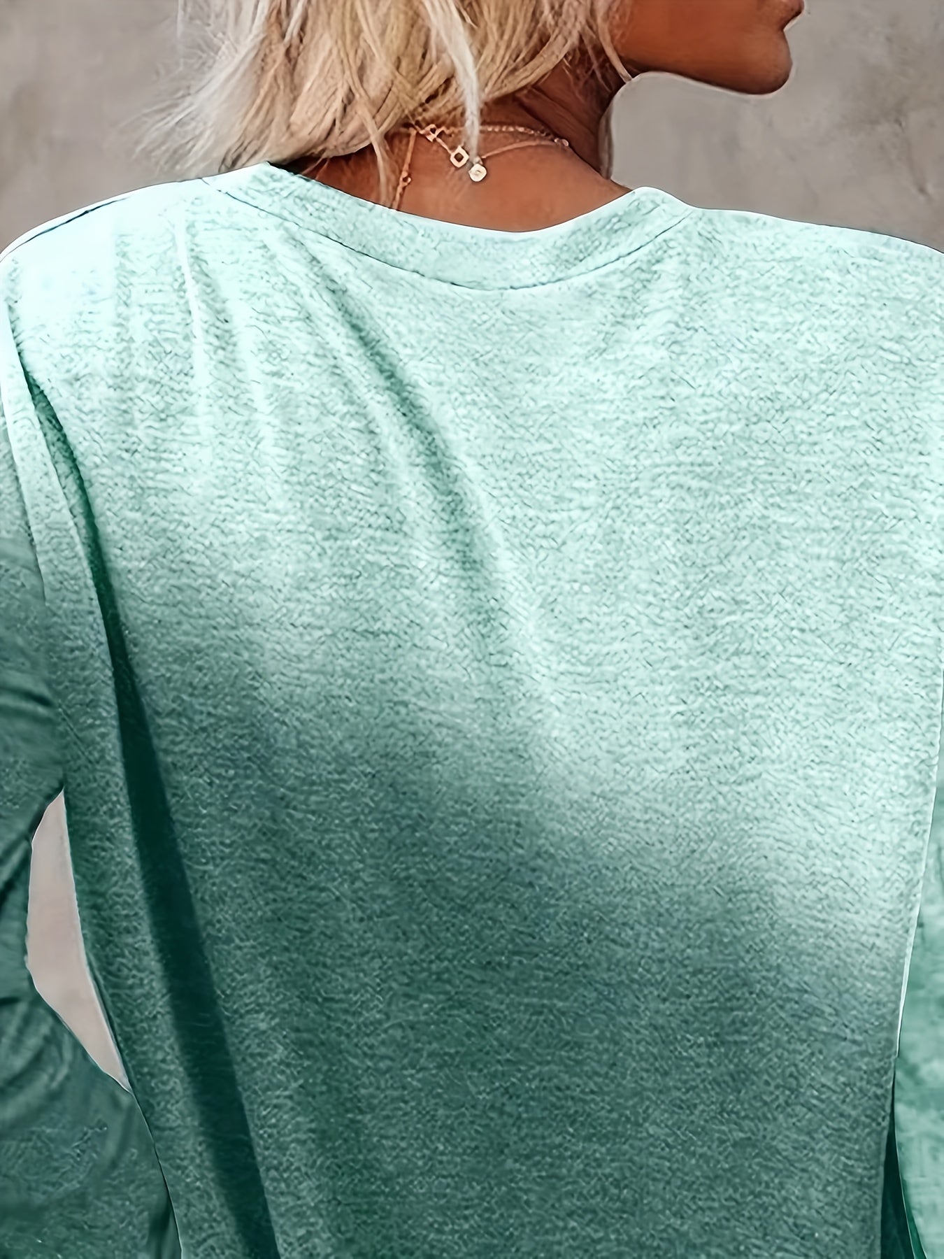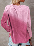 Sale Striped Botton Crew Neck T-Shirt, Elegant Long Sleeve T-Shirt