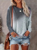 Sale Color Block Pocket T-Shirt, Casual Crew Neck Long Sleeve T-Shirt